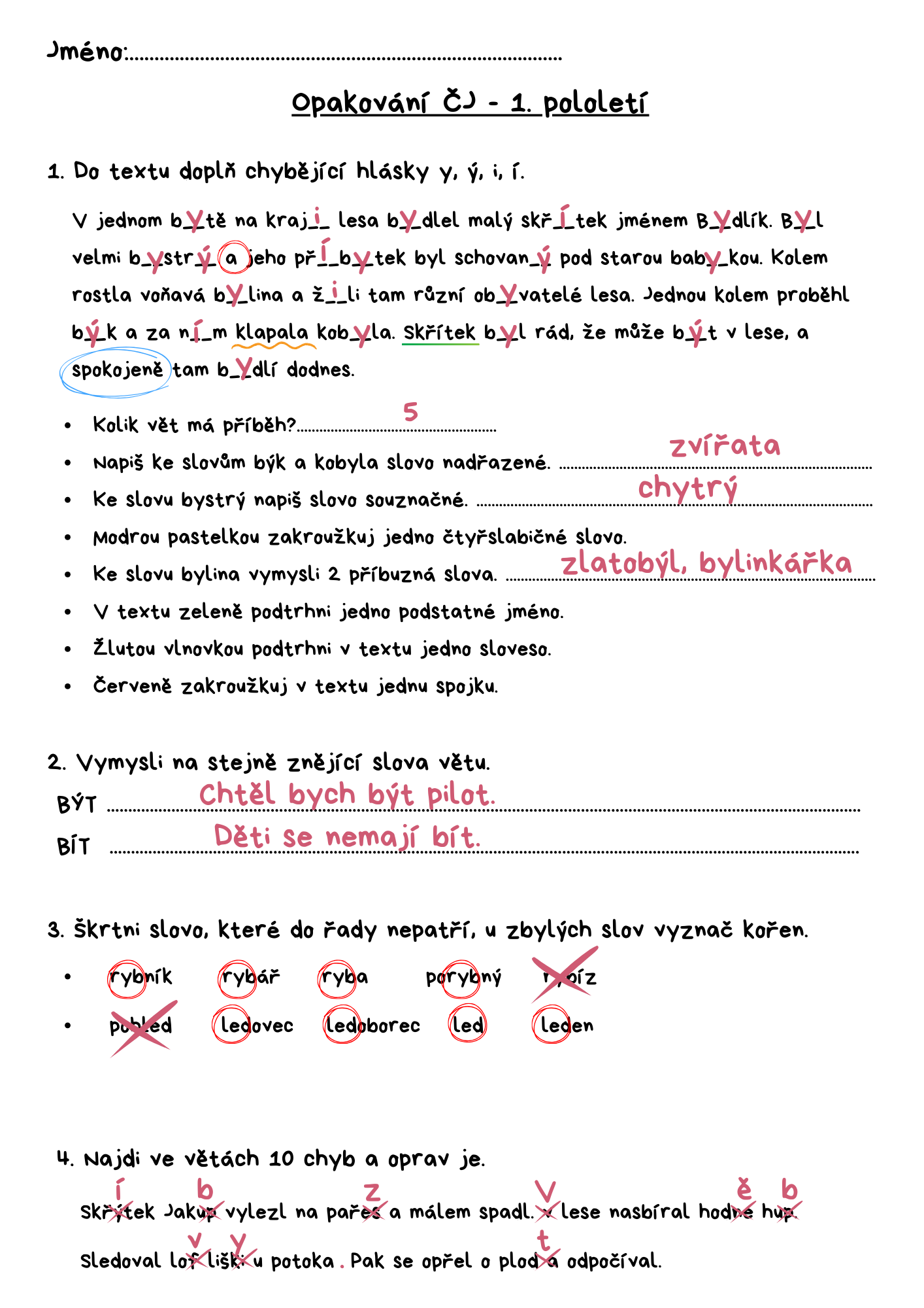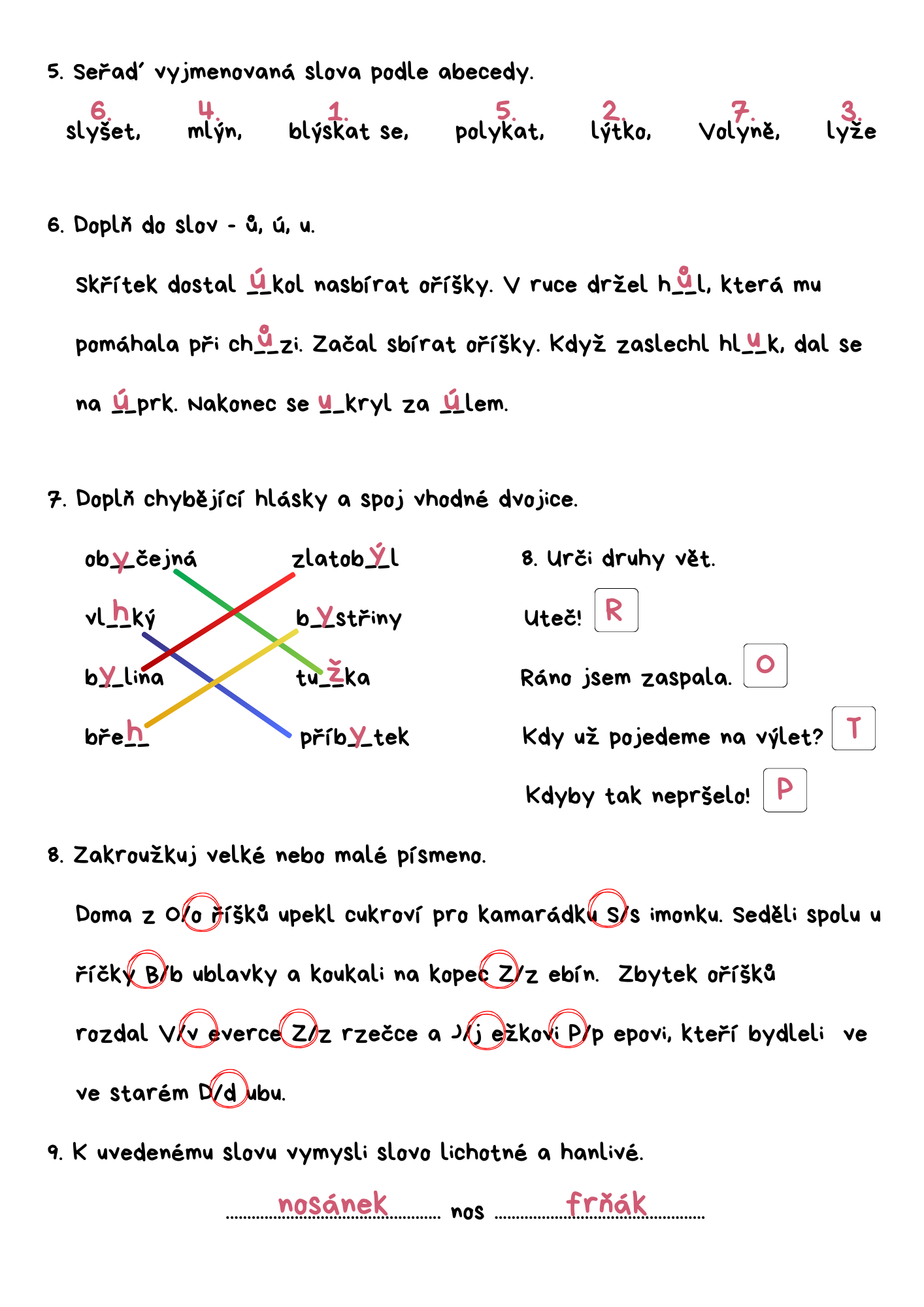 ČJ - význam slov, práce s textem, slova příbuzná, kořen slova, abeceda, vyjmenovaná slova po B, párové souhlásky, tvrdé a měkké slabiky, vlastní názvy, slovní druhy 1, 5, 8.