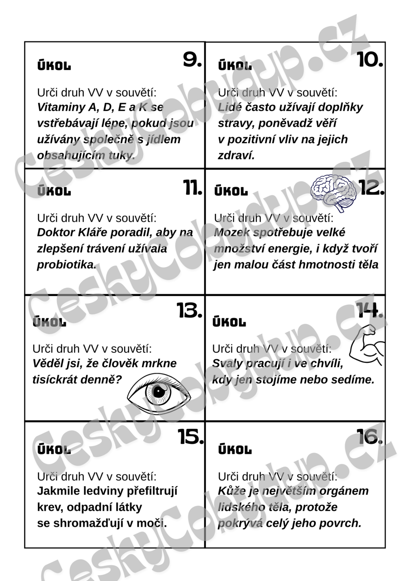 - individuální práce + samostatná kontrola díky řešení na druhé straně karty
