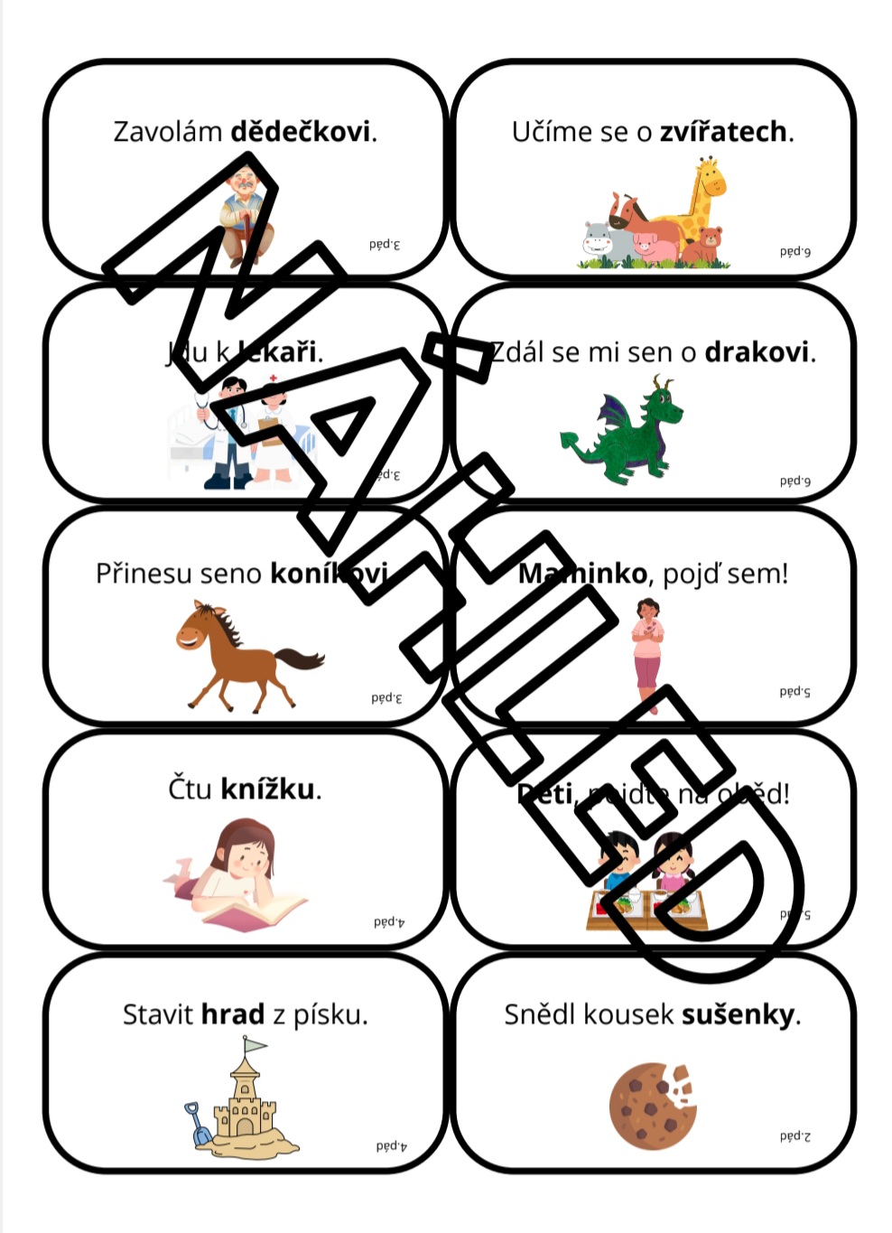 - Kdo má nejvyšší pád tučně zvýrazněného slova, vezme všechny kartičky a dá je na spod svého balíčku.