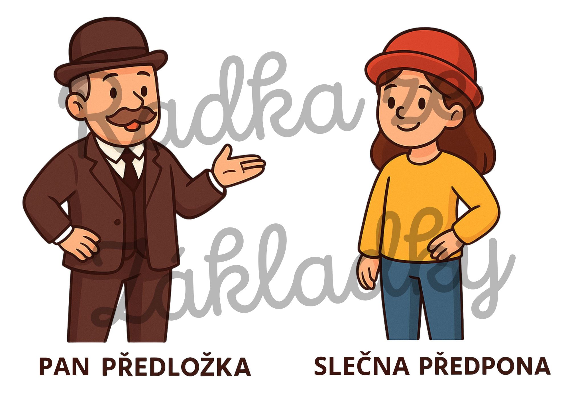 Dva obrázky - pan Předložka a slečna Předpona