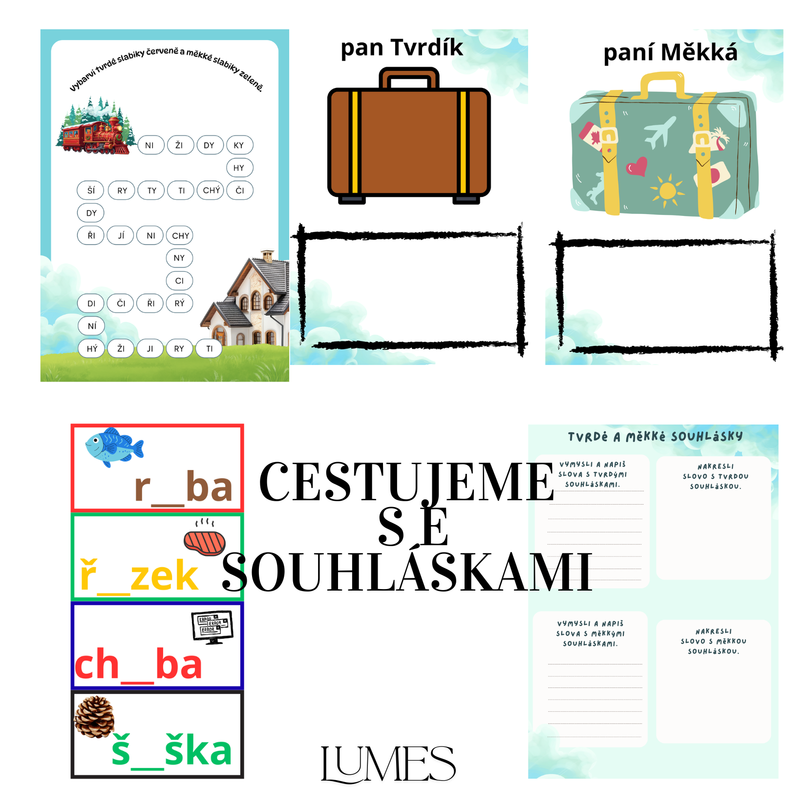 „Na cestování si musíme zabalit správné zavazadlo. Pan Tvrdík má v kufru jen slova, ve kterých po tvrdé souhlásce píšeme tvrdé y/ý. Paní Měkká si do kufru ukládá slova s měkkým i/í po měkké souhlásce.“