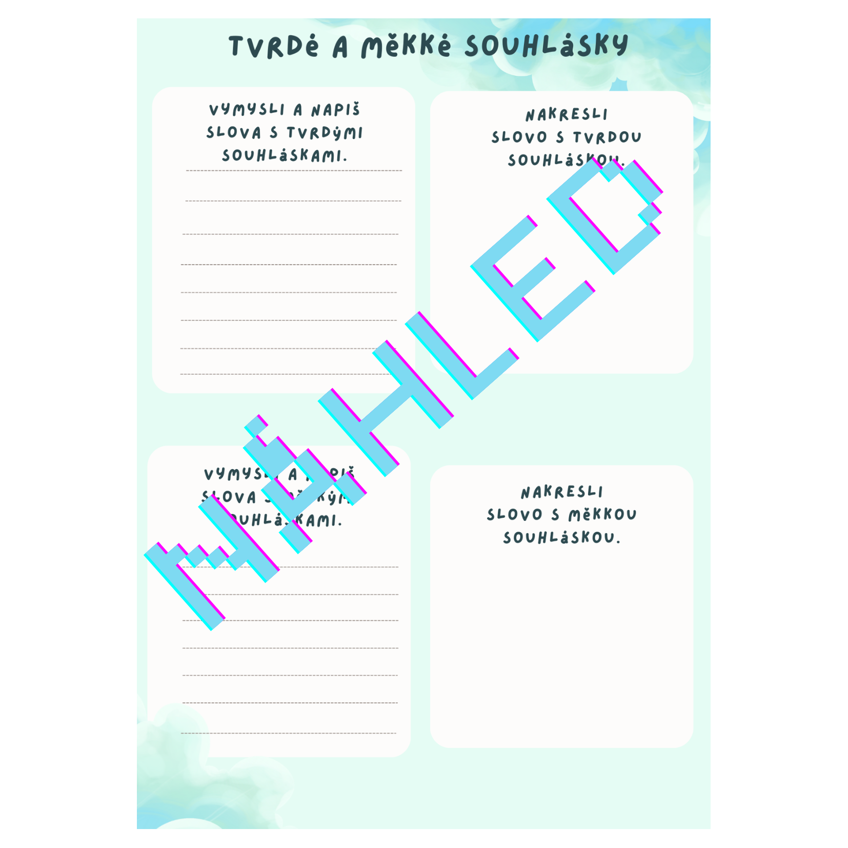 - Pracovní list na úvod – vybarvování slabik podle toho, zda jsou tvrdé nebo měkké (tisk pro každého žáka).