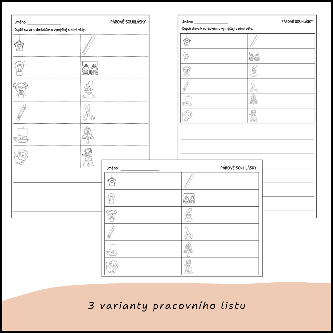 - pracovní list - 3 verze