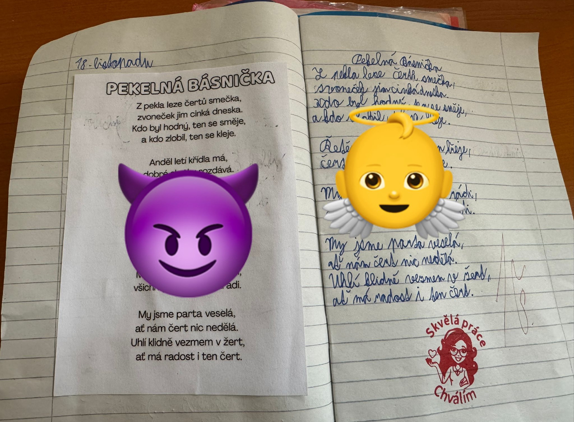 Báseň můžeme rozdělit - první a poslední sloka všichni, prostřední sloky se střídají holky a kluci.