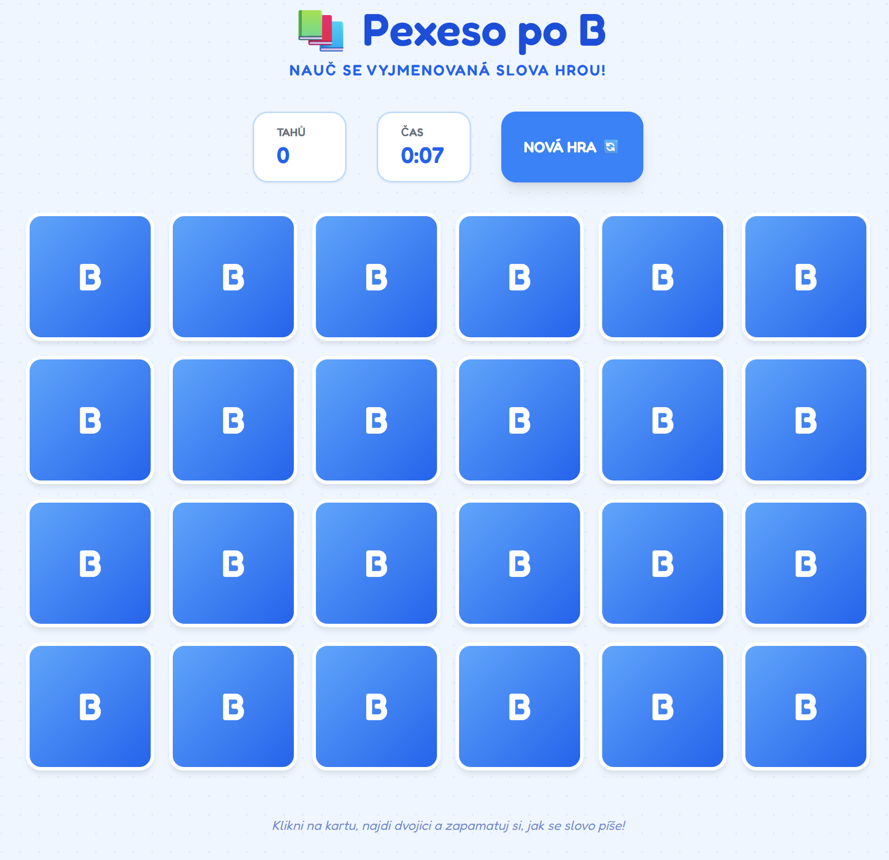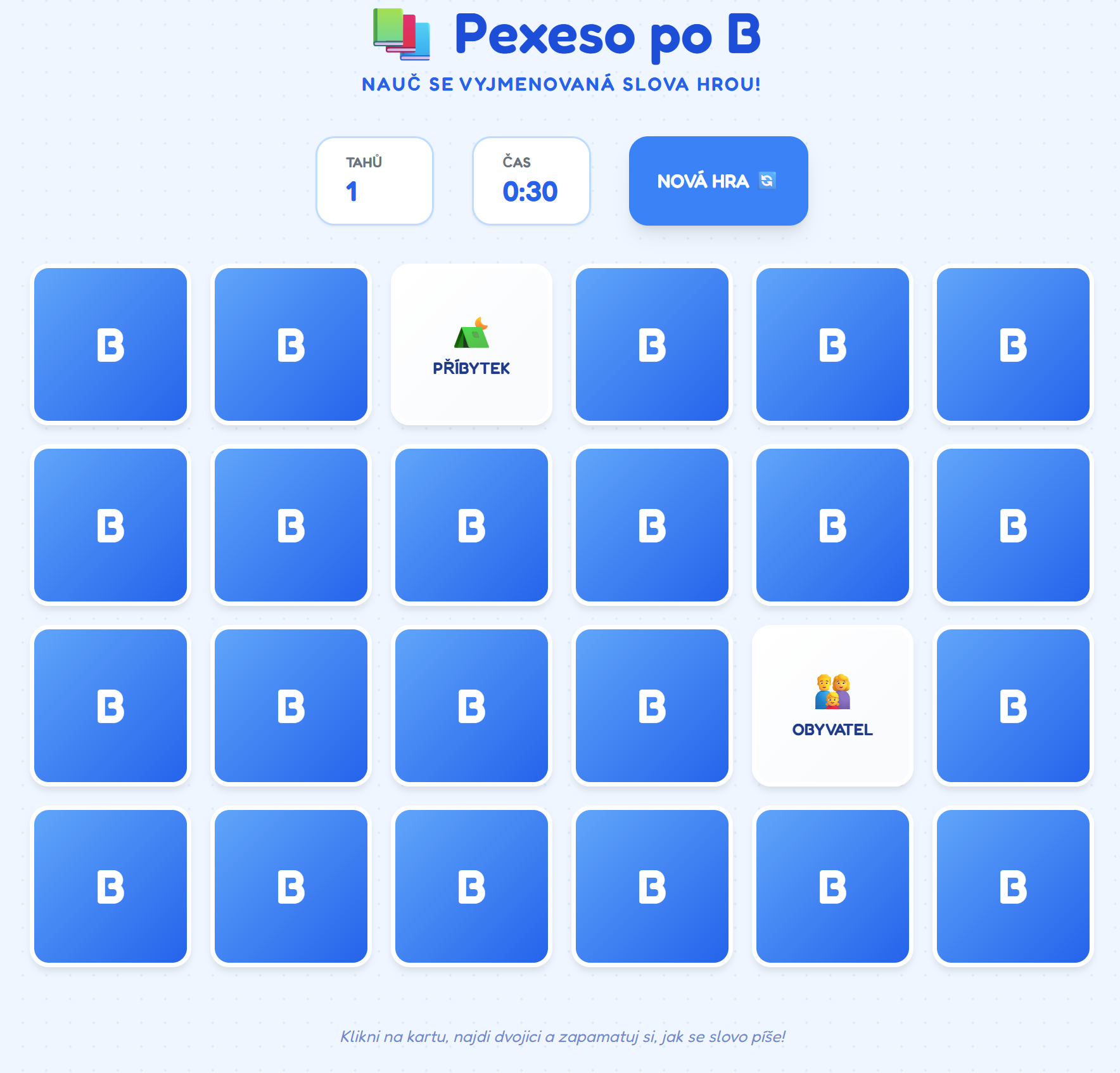 📚 Interaktivní pexeso: Vyjmenovaná slova po B