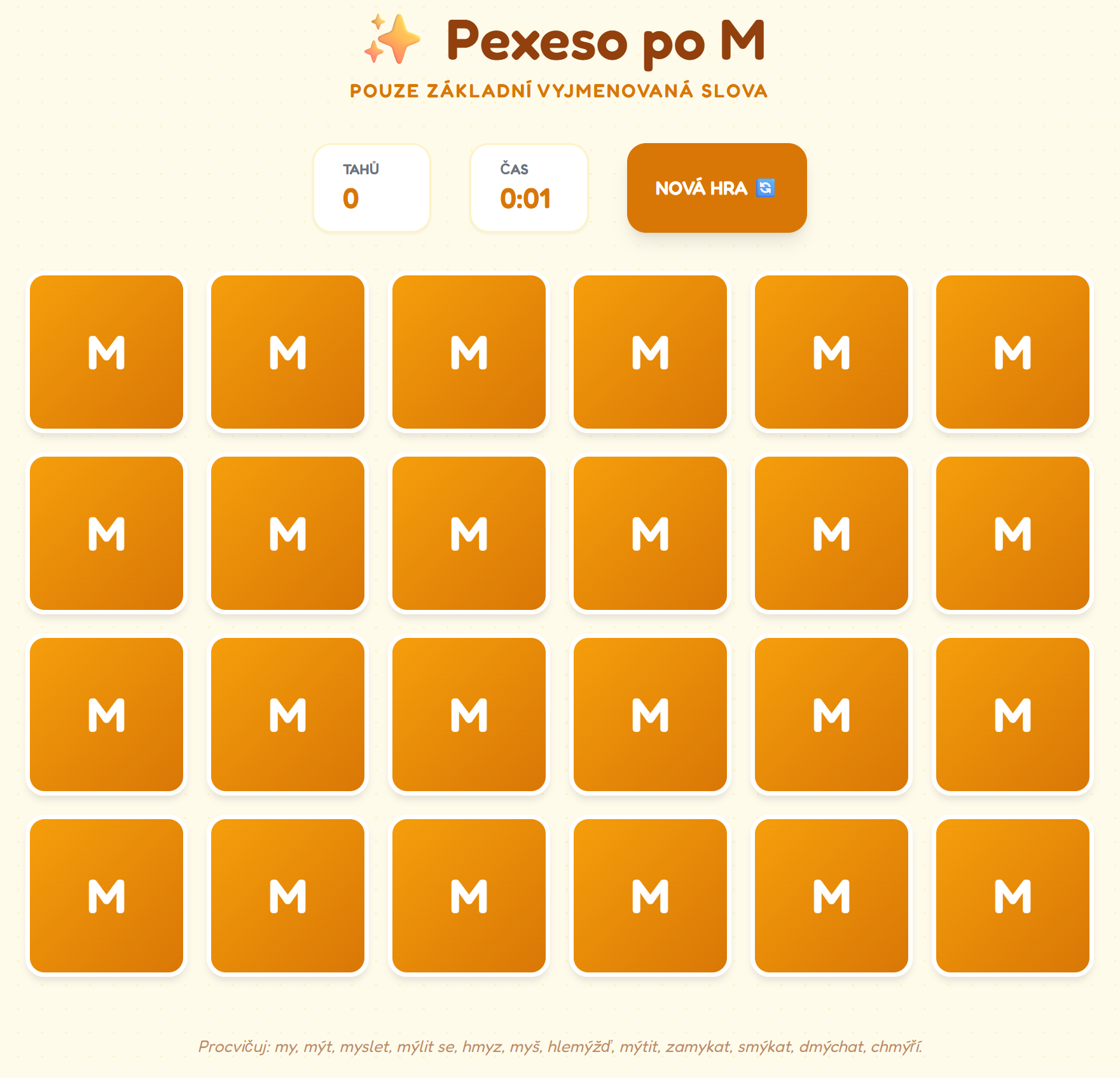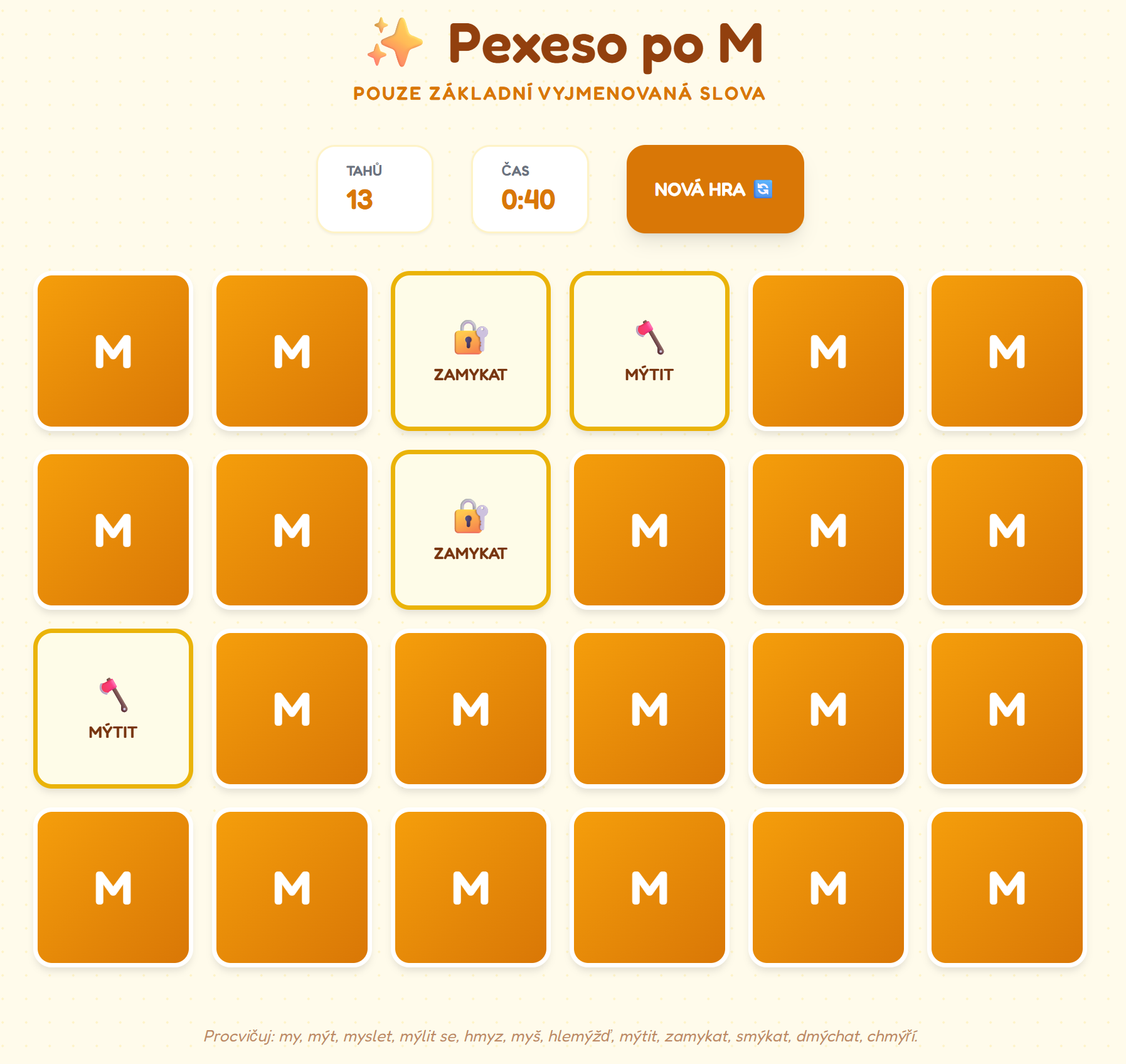 Shrnutí aktivity: Interaktivní pexeso – Vyjmenovaná slova po M