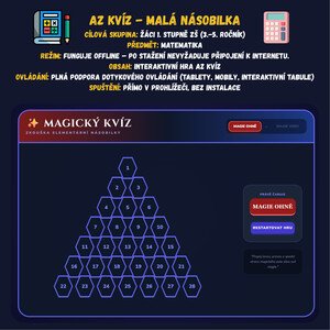 - Technická nenáročnost: Hra funguje přímo v prohlížeči (offline) a je plně responzivní – můžete ji spustit na interaktivní tabuli, počítači i tabletu.