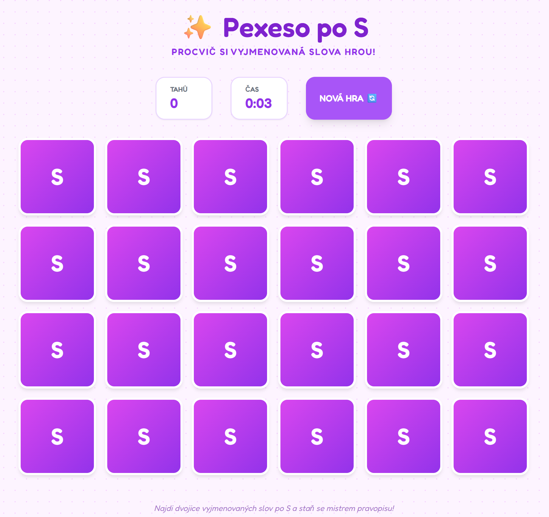 🎮 Interaktivní pexeso: Vyjmenovaná slova po S