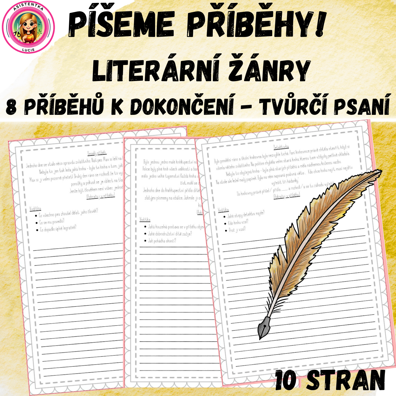 Tento materiál je zaměřen na rozvoj čtenářské a pisatelské gramotnosti žáků na 1. stupni základní školy. Prostřednictvím krátkých úvodů do příběhů si žáci vyzkouší psaní v různých literárních žánrech a zároveň budou rozvíjet svou fantazii, slovní zásobu a schopnost samostatně tvořit text.