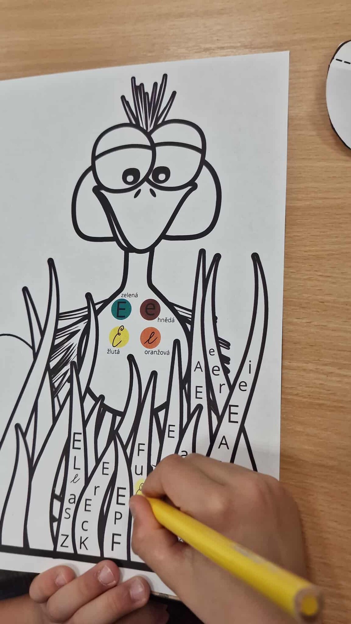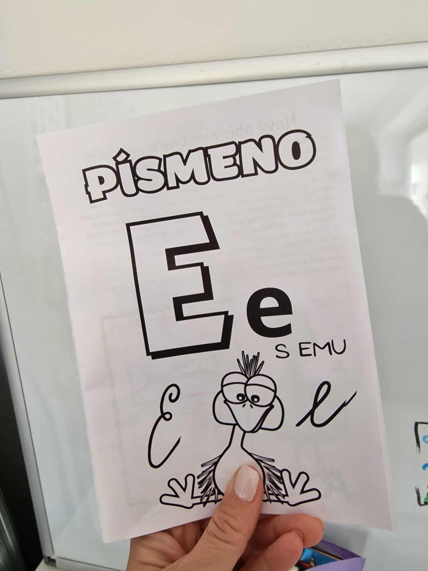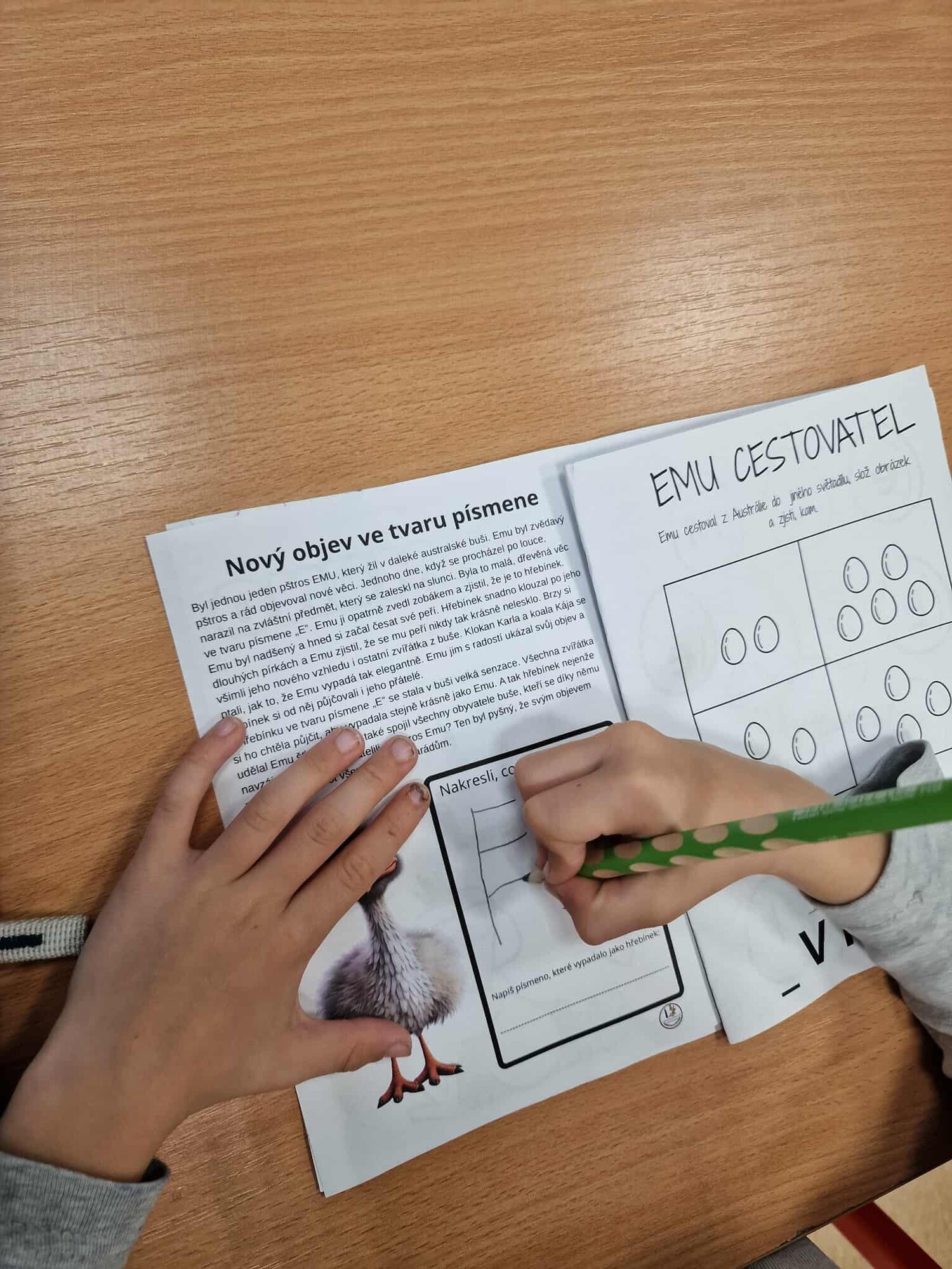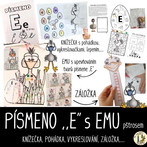 PŠTROS EMU – PL – označování tvarů písmen podle zadání + lepení 3D VEJCE – do