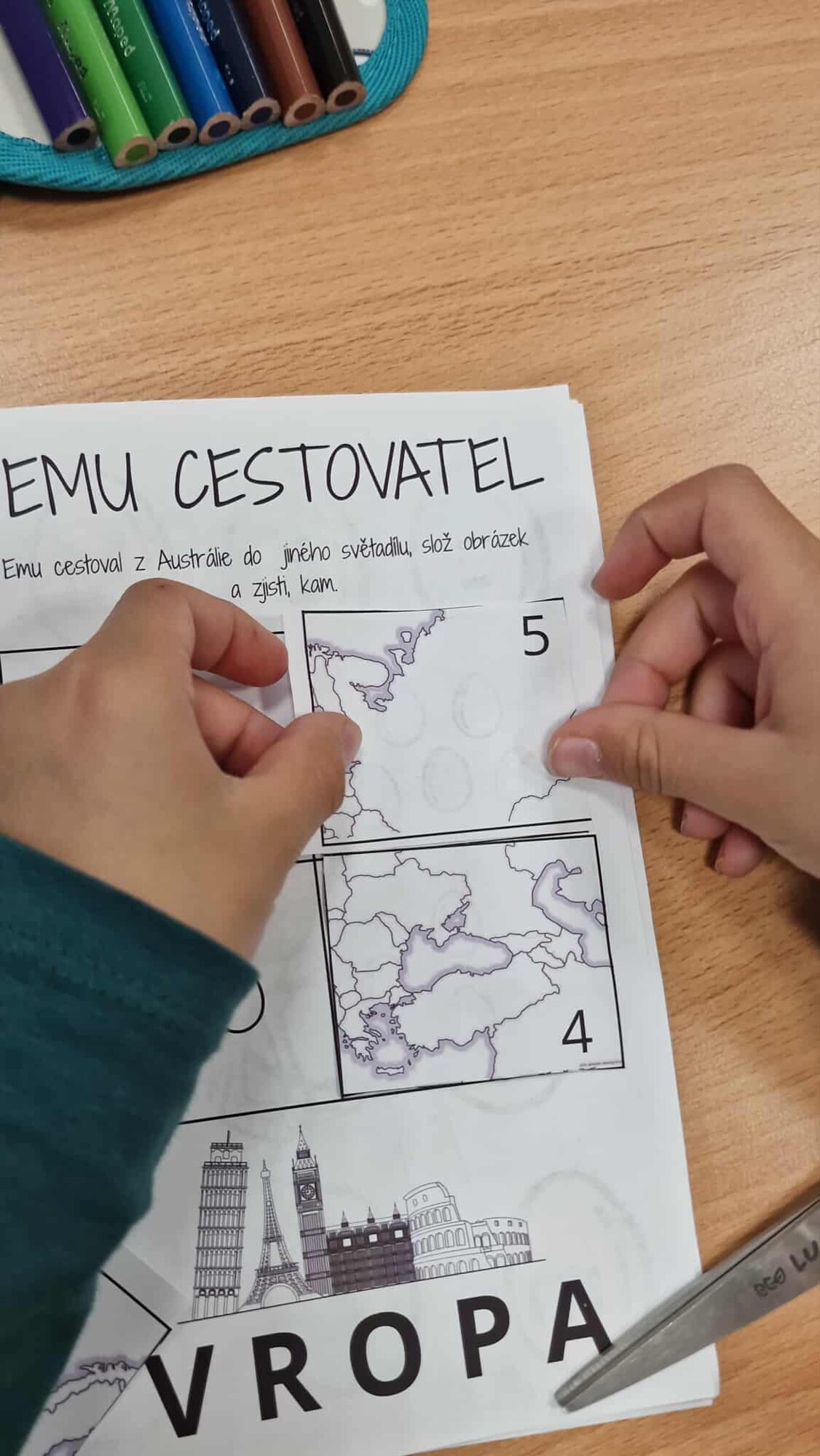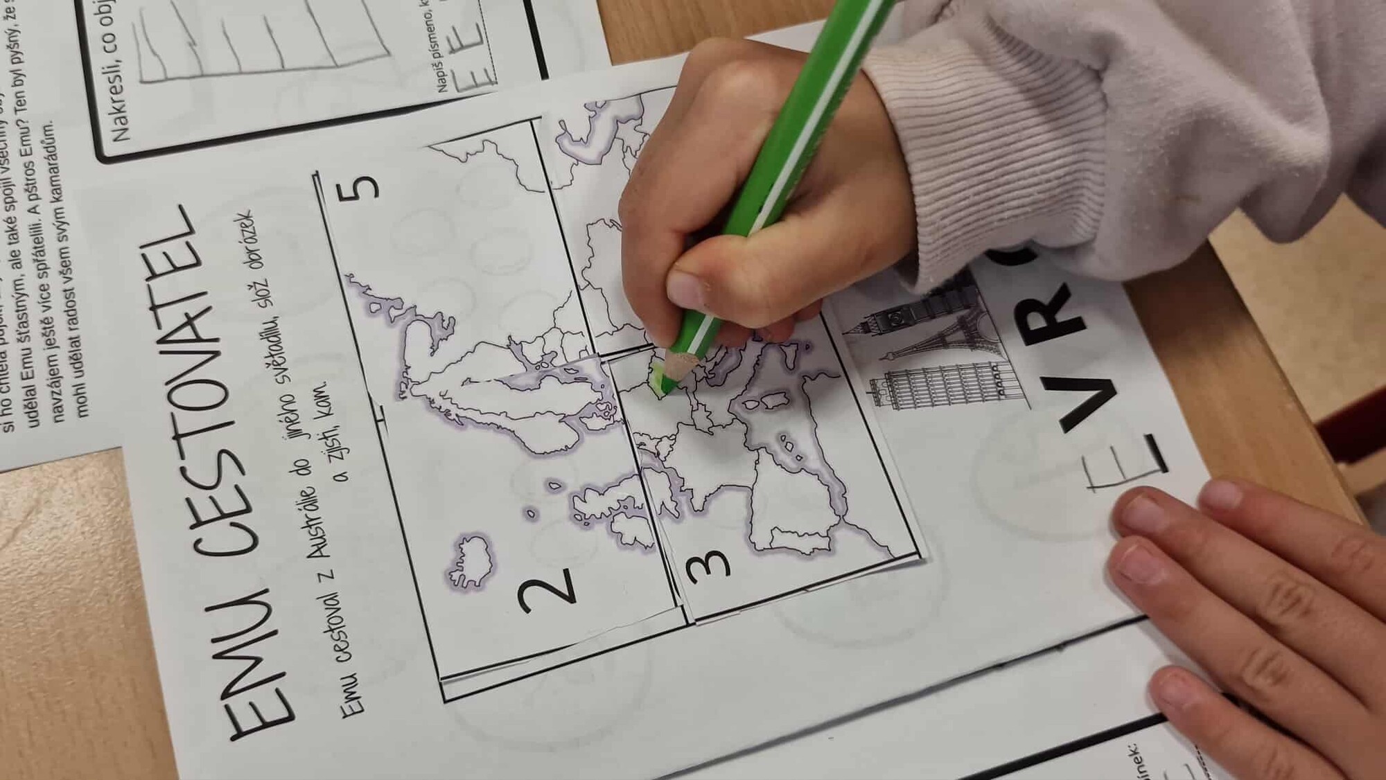 objeví kam pštros cestoval (EVROPA). Doplní E do slova Evropa. S pomocí
