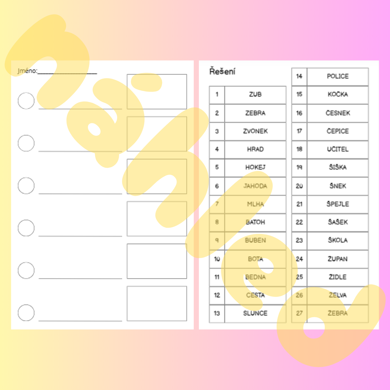 Aktivita zaměřená na počáteční hlásky a psaní slov.