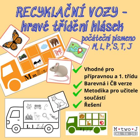 Počáteční písmena - M, L, P, S, T, J (vyvození písmen).