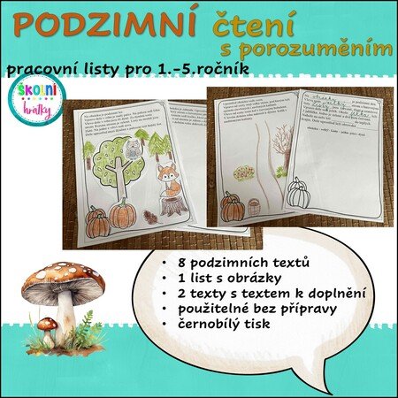 Soubor obsahuje 8 krátkých podzimních textů ke čtení s porozuměním, které procvičují i prostorovou orientaci.