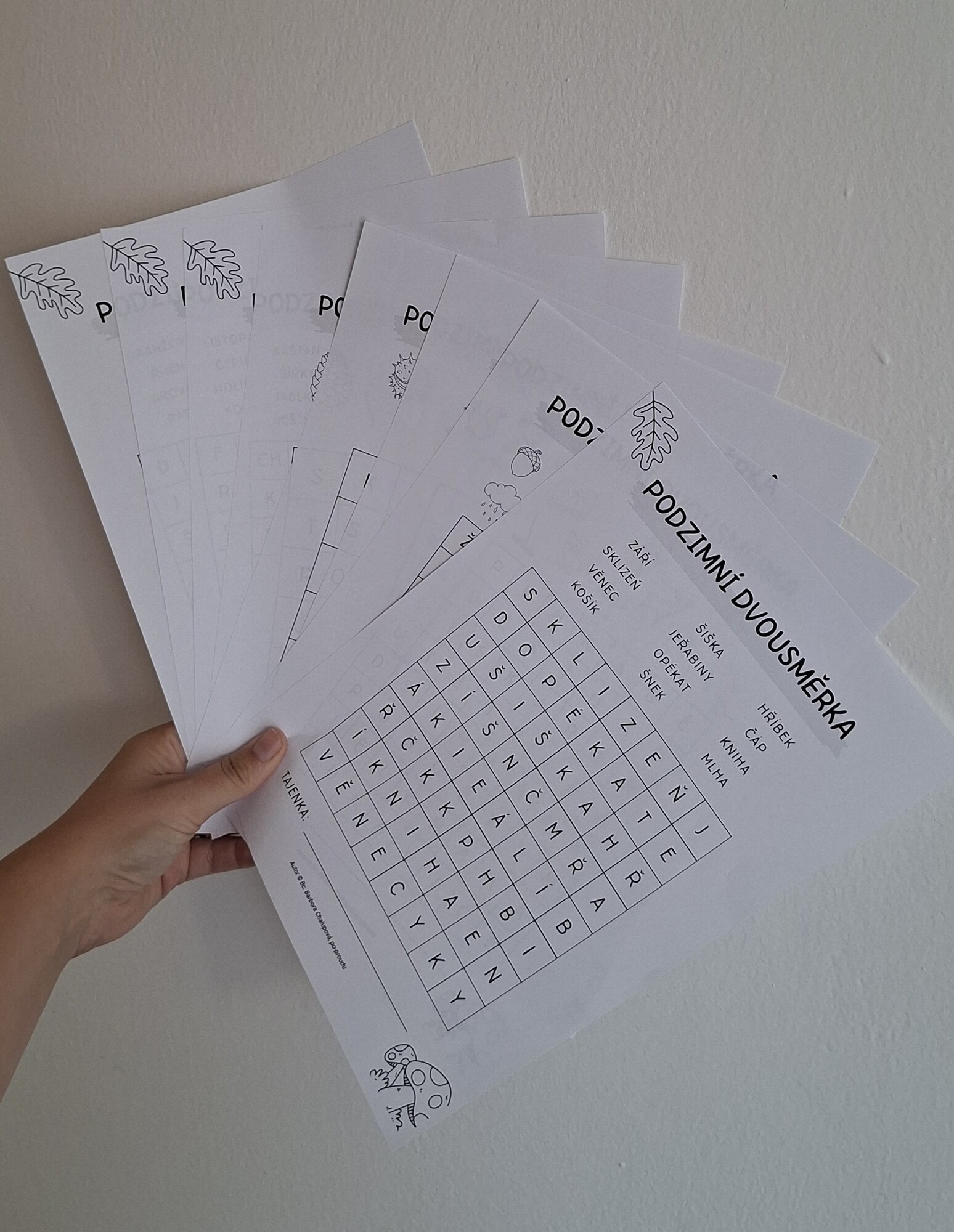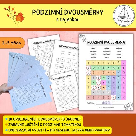 - 10 originálních poodzimních dvousměrek s vyznačenými slovy k vyhledávání vodorovně i svisle.