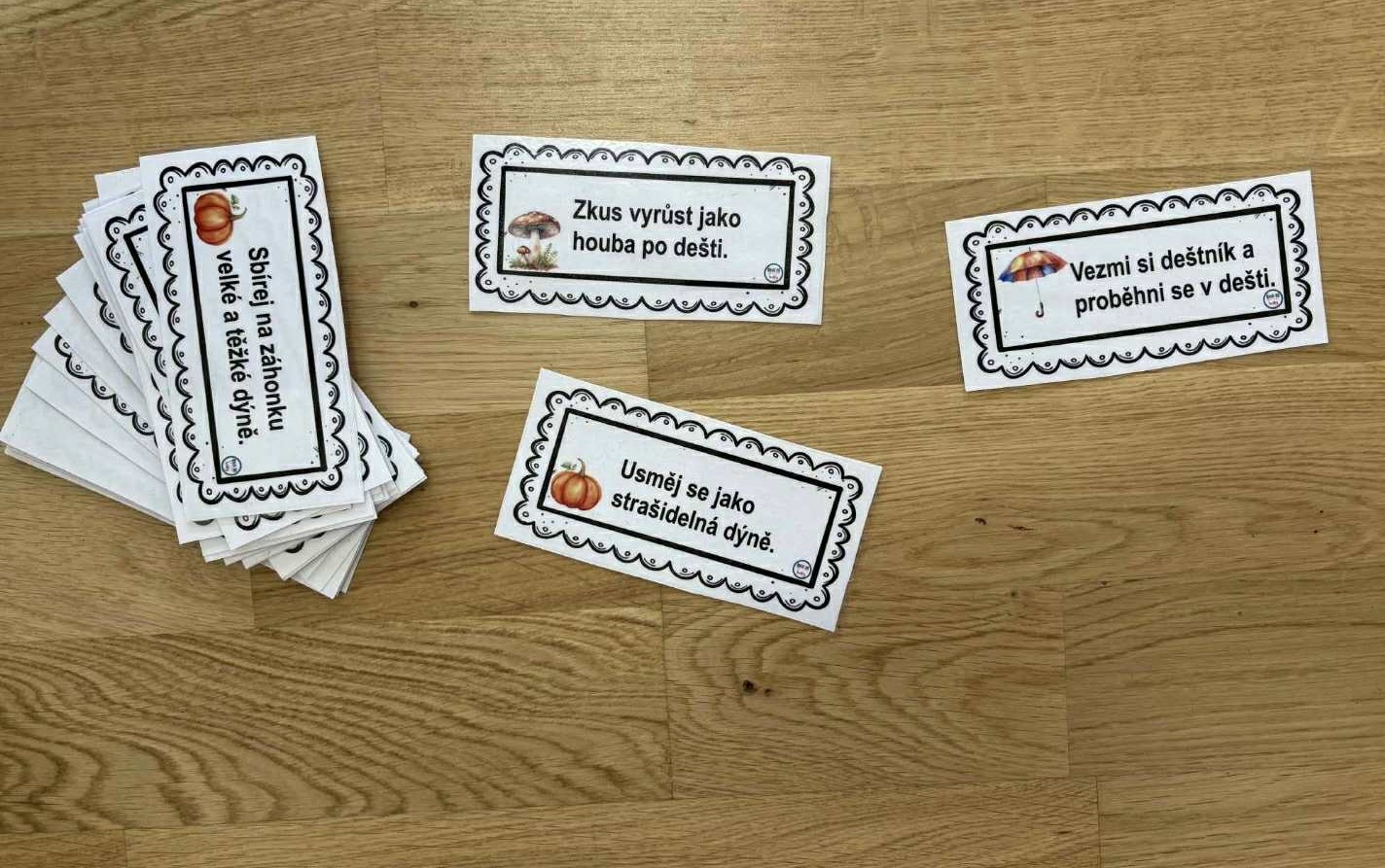Každá karta obsahuje jiný úkol – od dynamických pohybů až po zklidnění. Vybrat si můžete podle aktuální situace ve třídě.