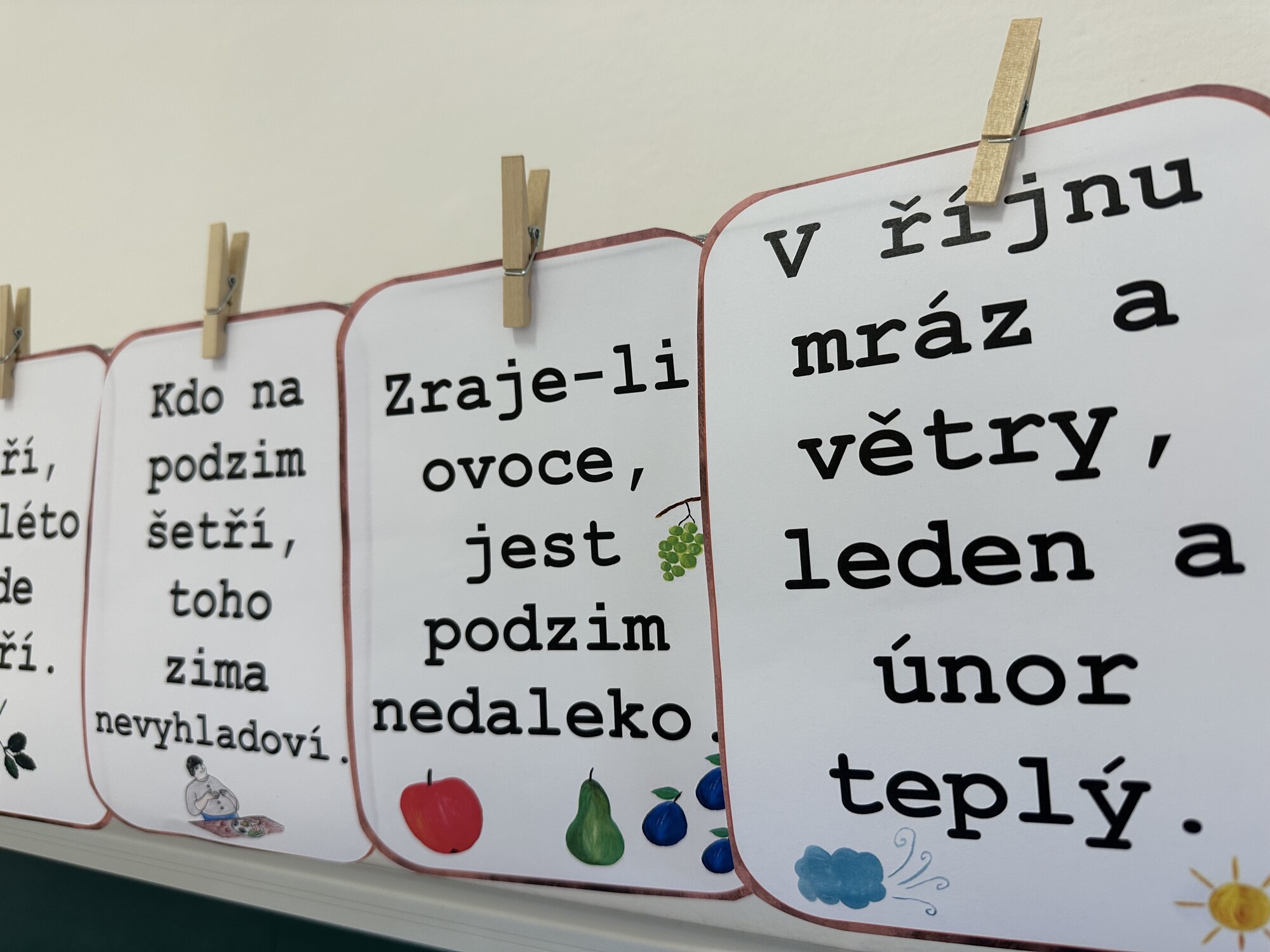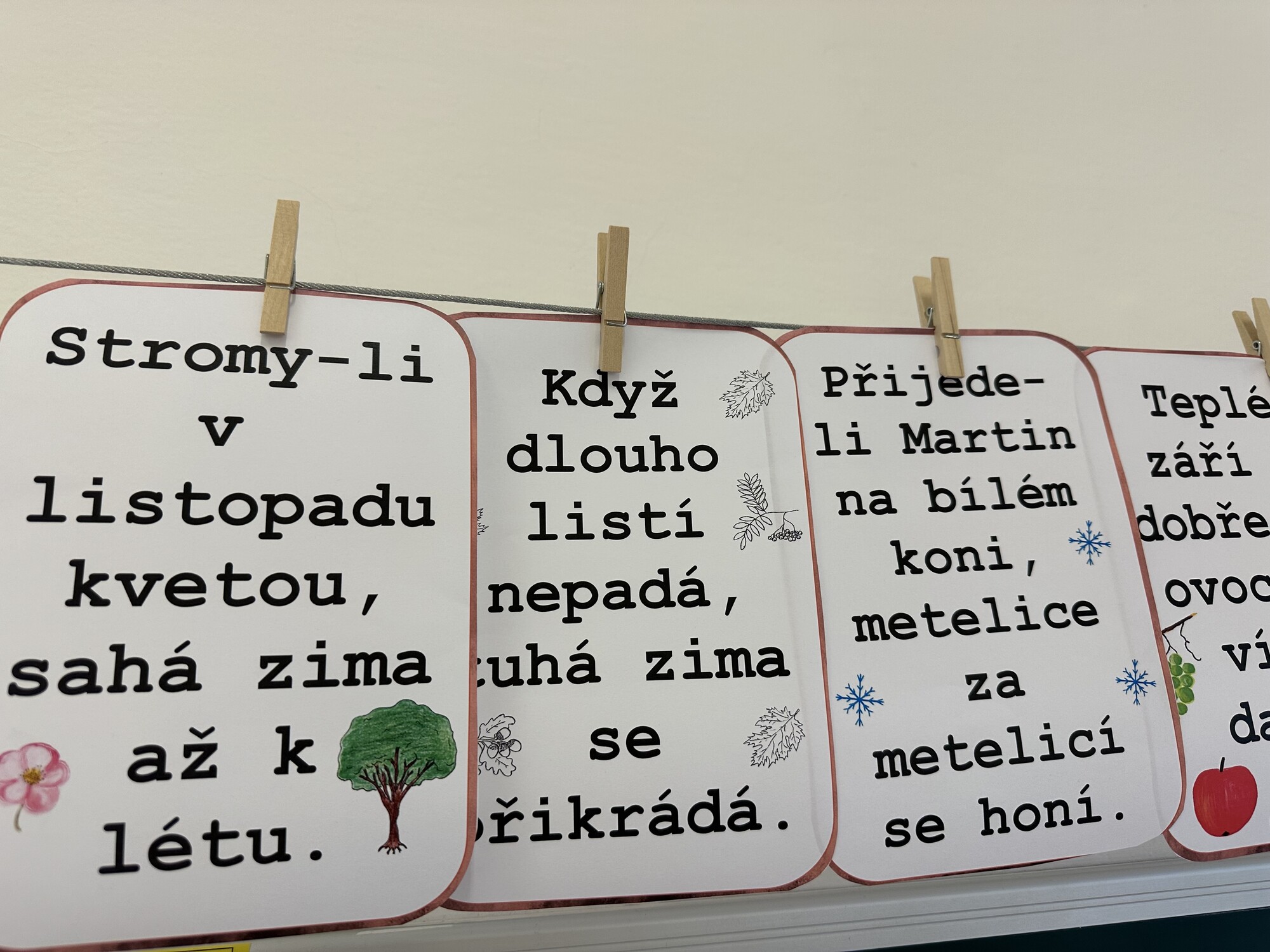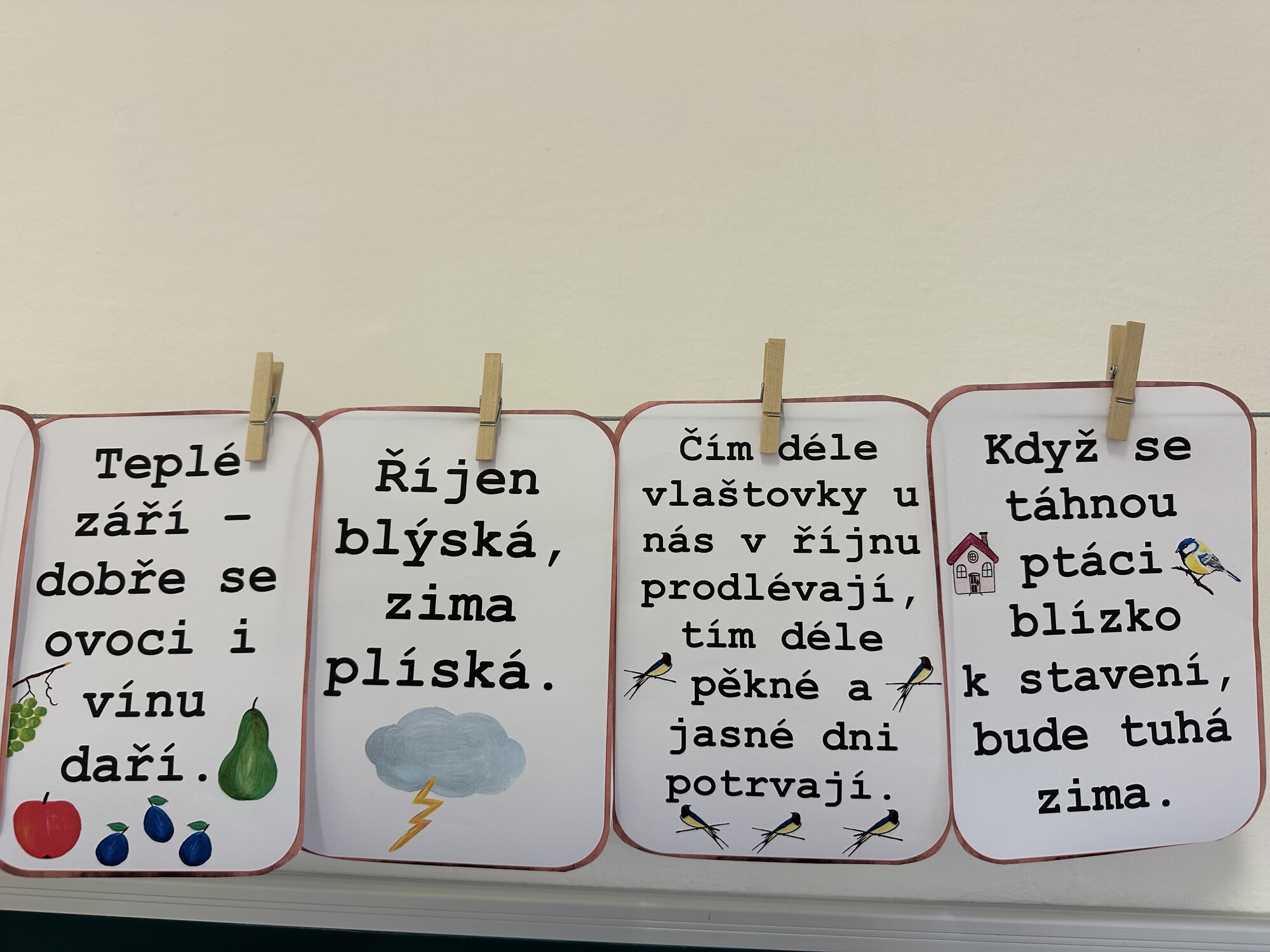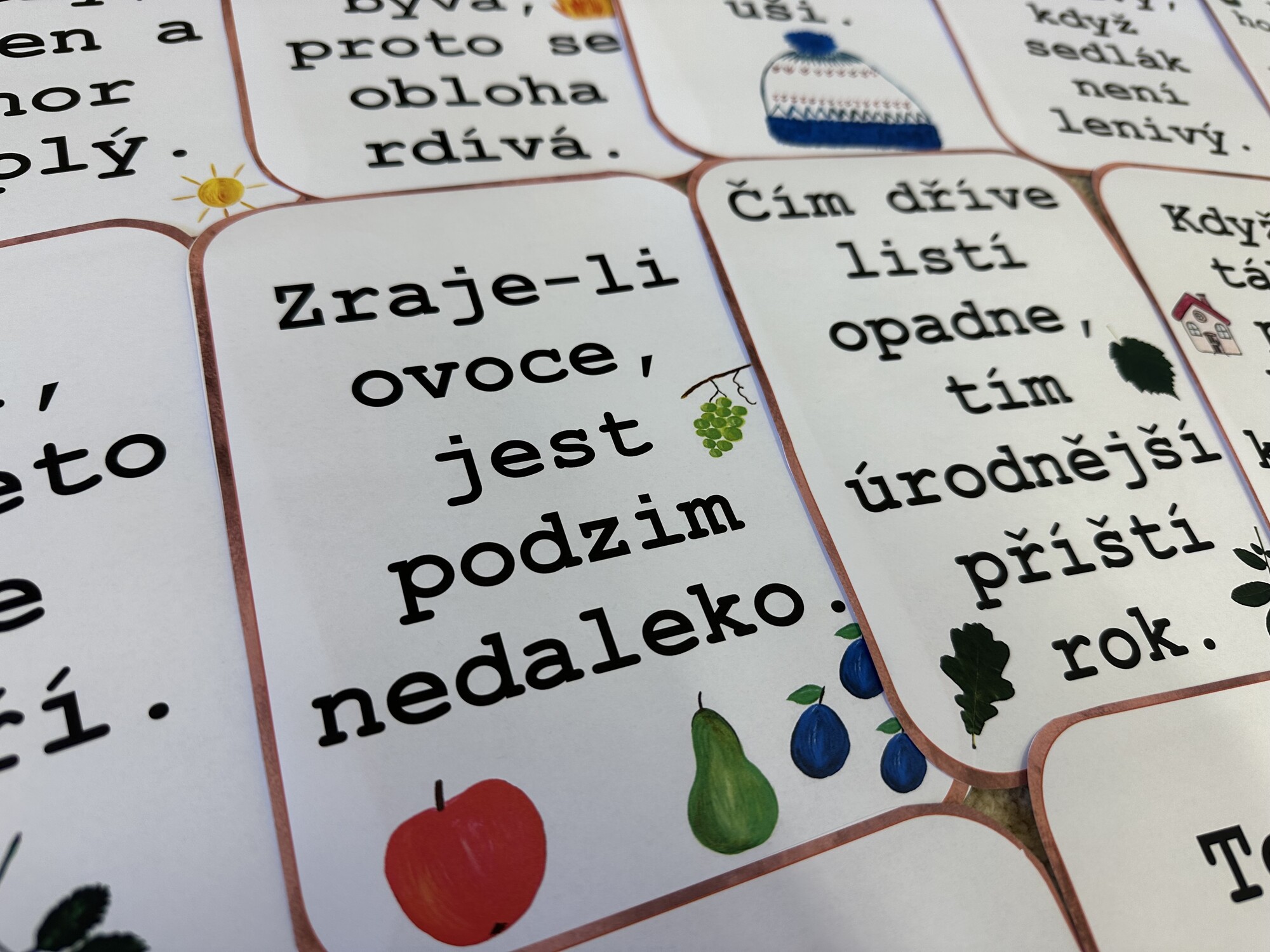 Materiál obsahuje 14 A4 stran – 28 A5 karet s podzimními pranostikami k výuce nebo k výzdobě třídy. Ručně malované a kreslené obrázky.