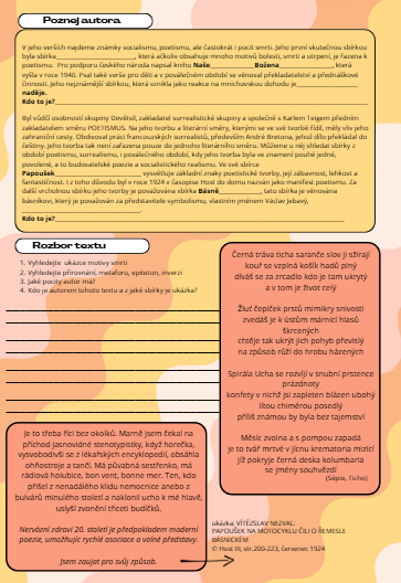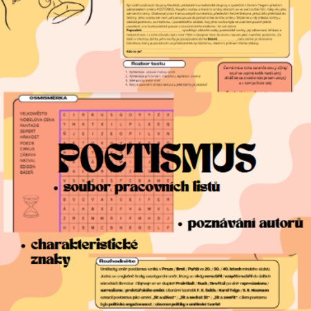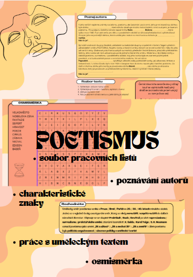 Přehledný a praktický materiál k tématu poetismus, který vám usnadní přípravu na hodinu a studentům pomůže pochopit jeden z klíčových směrů české meziválečné literatury.