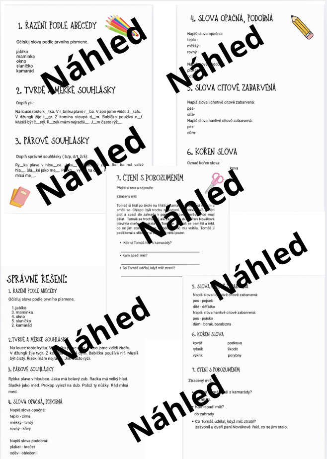 Návod na přípravu: Při přípravě materiálu je potřeba vytisknout všechny listy. Vytisknete tolik kopií, kolik máte žáků ve třídě. Materiál můžete vytisknout černobíle i barevně.
