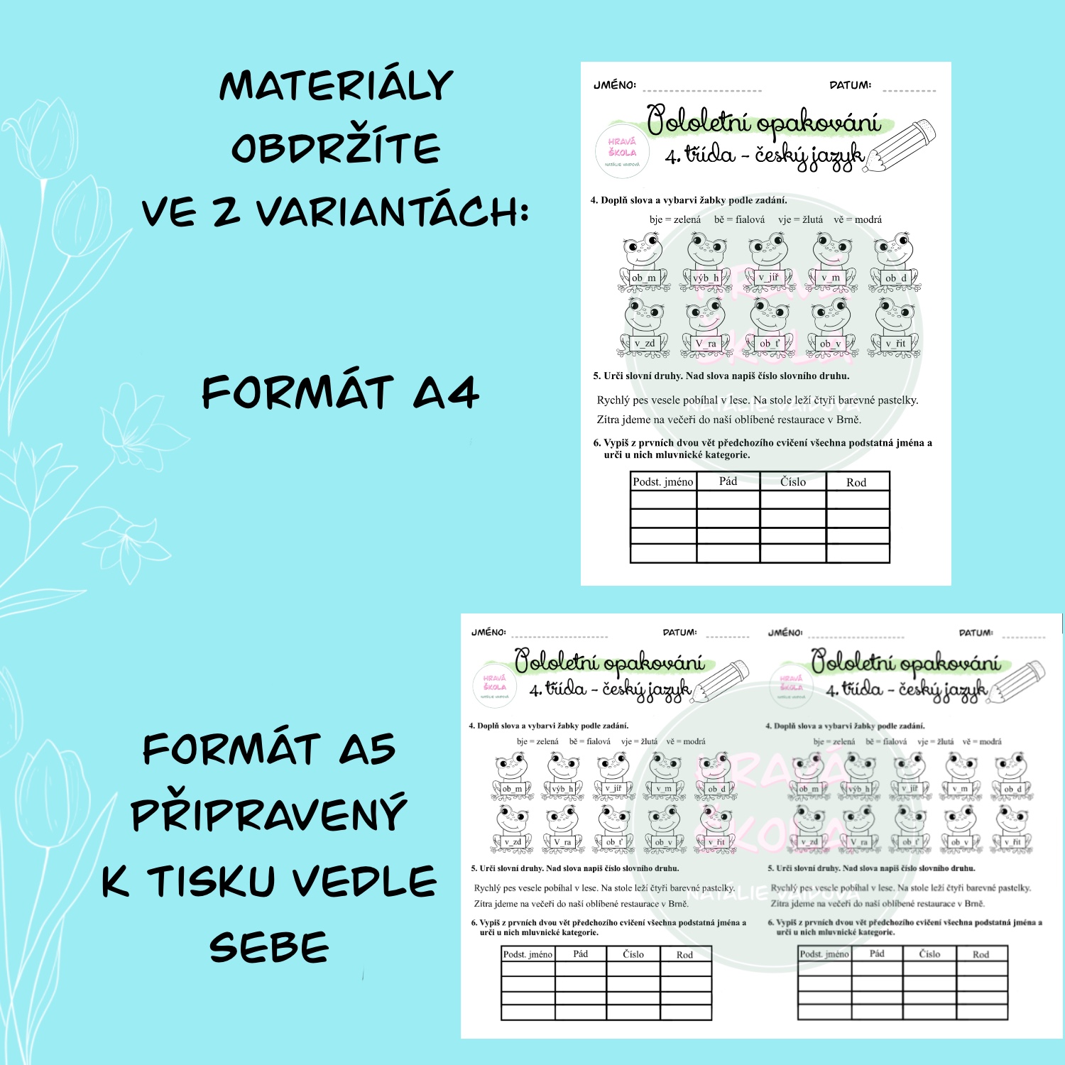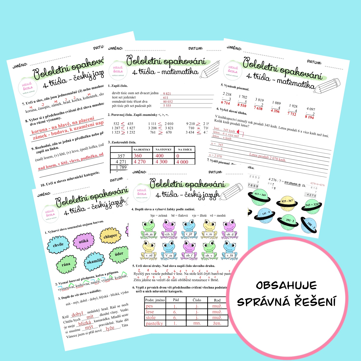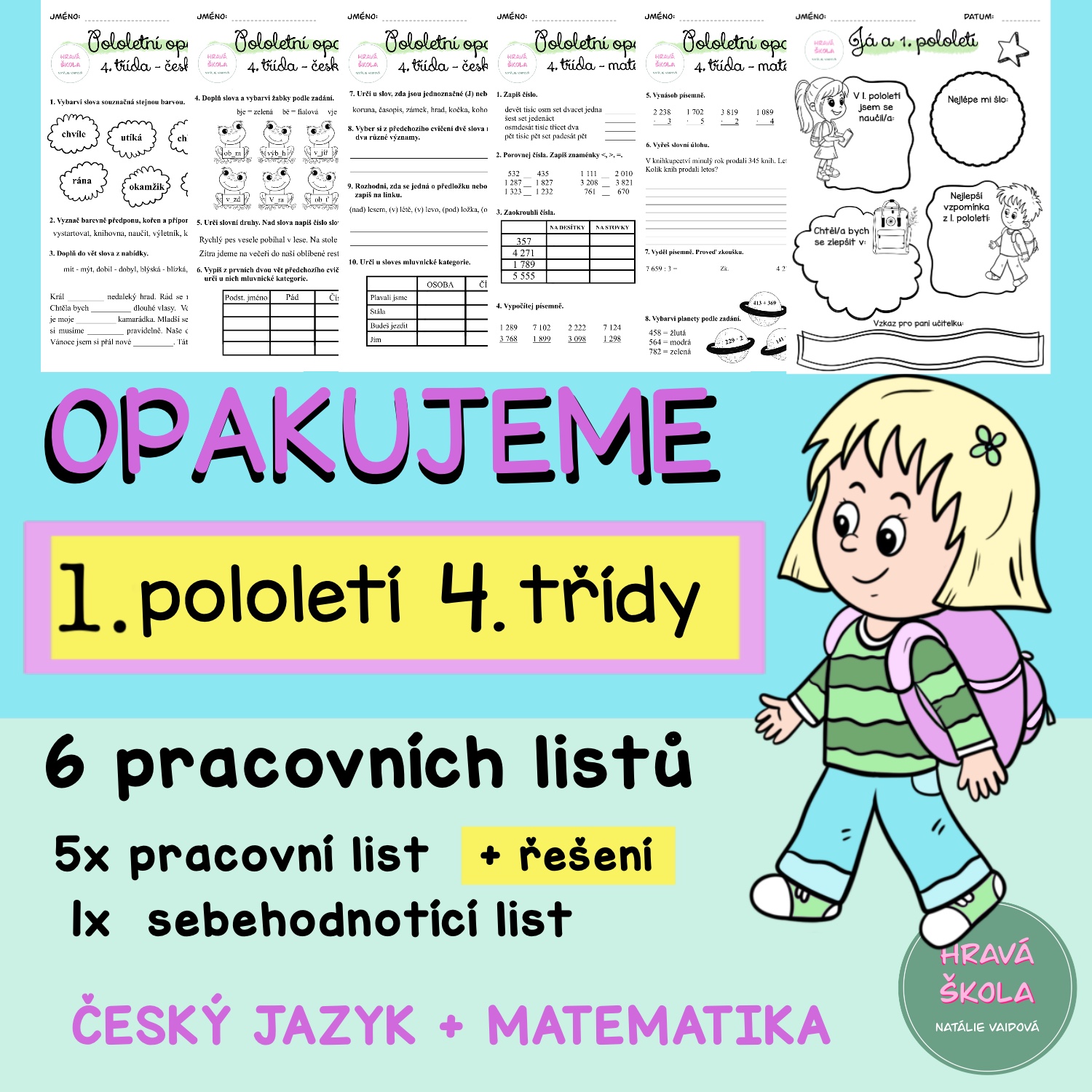 ✏️Materiál obsahuje 5 pracovních listů k zopakování učiva 1. pololetí českého jazyka a matematiky 4. třídy.