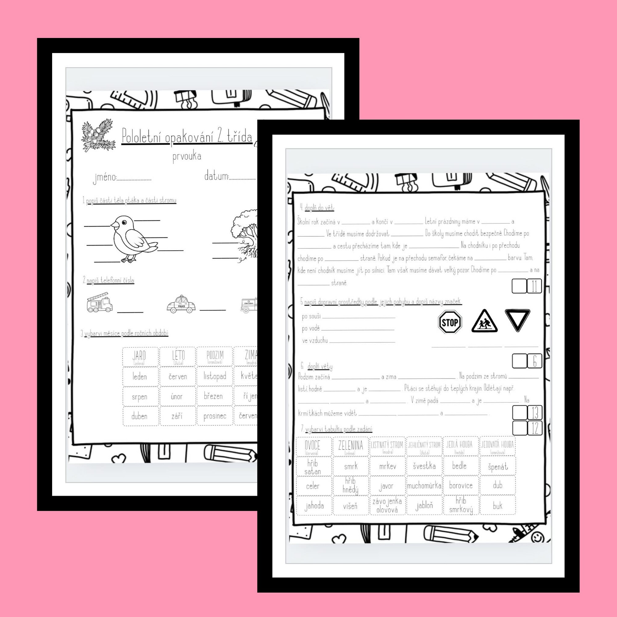 Tento materiál slouží k systematickému zopakování učiva za 1. pololetí 2. ročníku ZŠ. Je vhodný pro využití jako pololetní opakovací test, případně jako souhrnné procvičování před hodnocením.