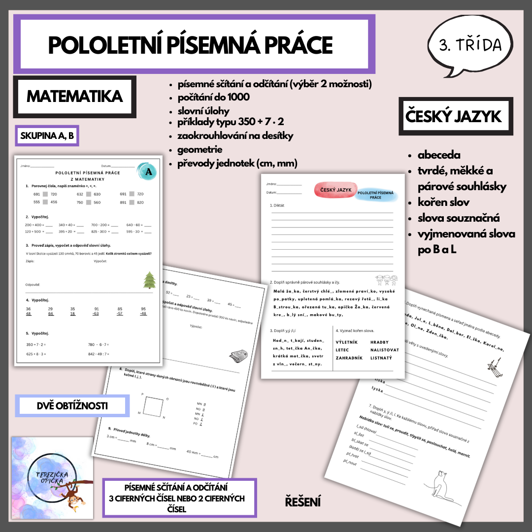 3. TŘÍDA - MATEMATIKA, ČESKÝ JAZYK