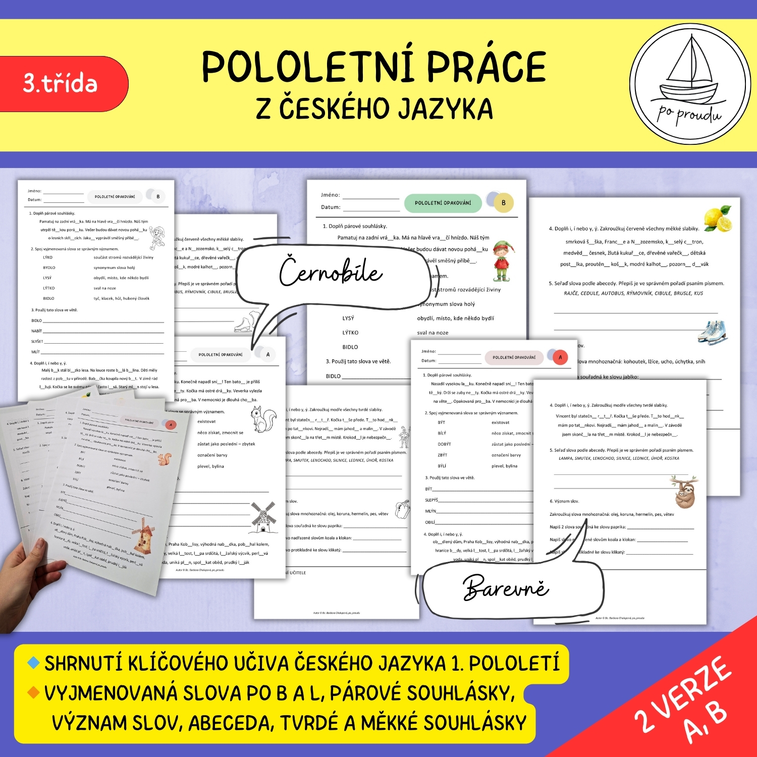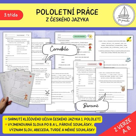 Přehledná pololetní práce ve dvou variantách (A, B)slouží k zopakování a ověření klíčových pravopisných a jazykových jevů, se kterými se žáci 3. třídy během prvního pololetí. ✨