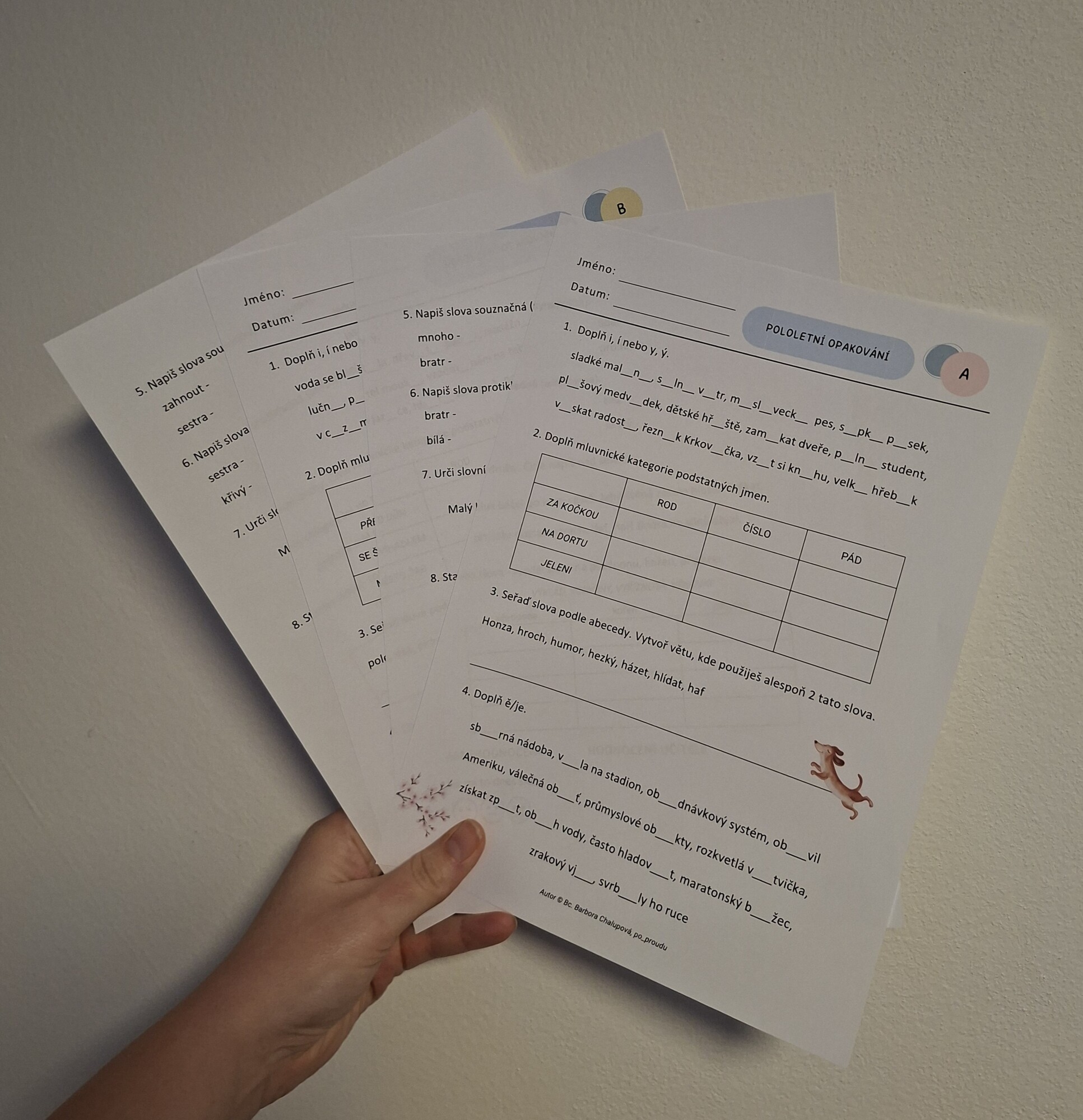 Přehledná pololetní práce ve dvou variantách (A, B)slouží k zopakování a ověření klíčových pravopisných a jazykových jevů, se kterými se žáci 4. třídy během prvního pololetí. ✨