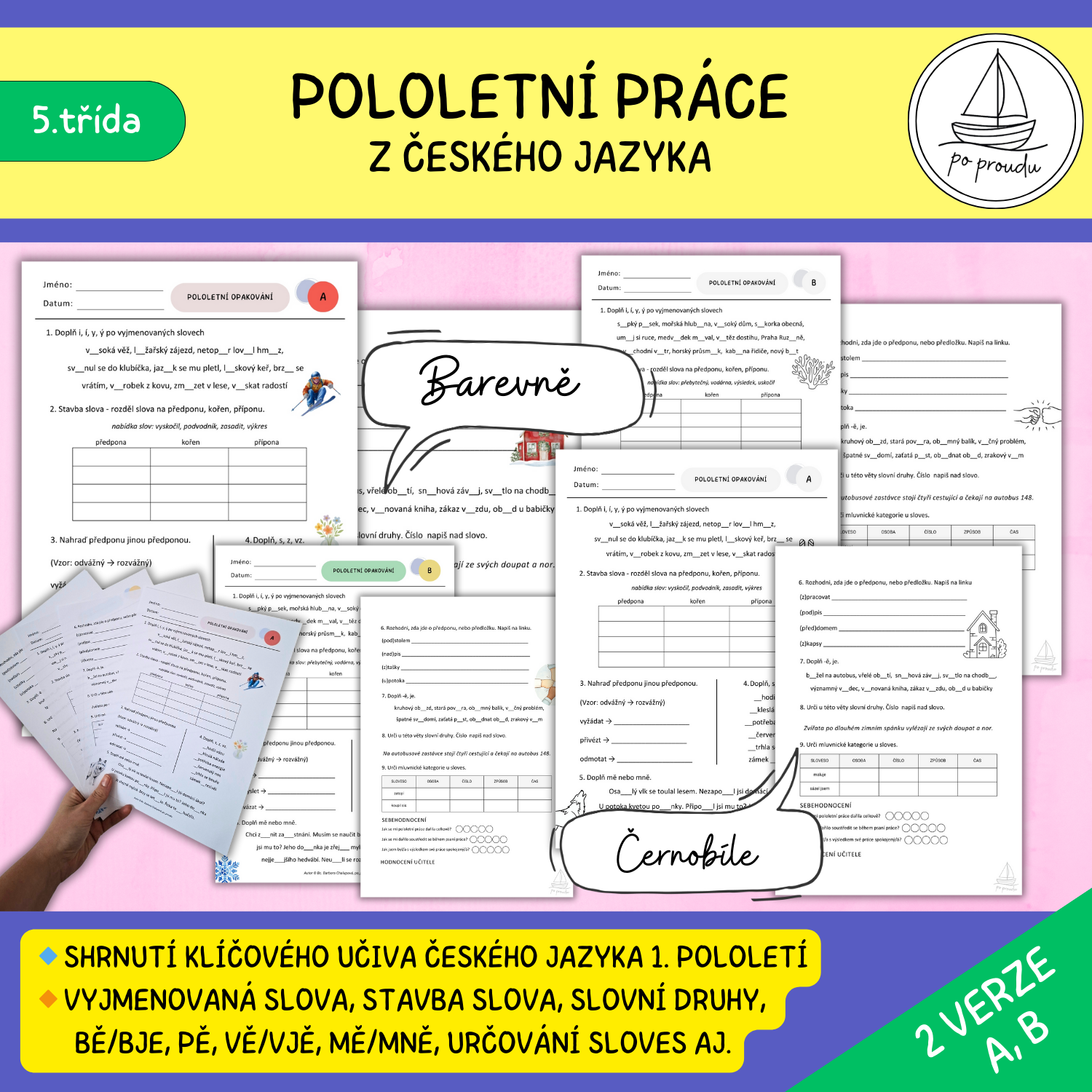 Přehledná pololetní práce ve dvou variantách (A, B)slouží k zopakování a ověření klíčových pravopisných a jazykových jevů, se kterými se žáci 5. třídy během prvního pololetí. ✨