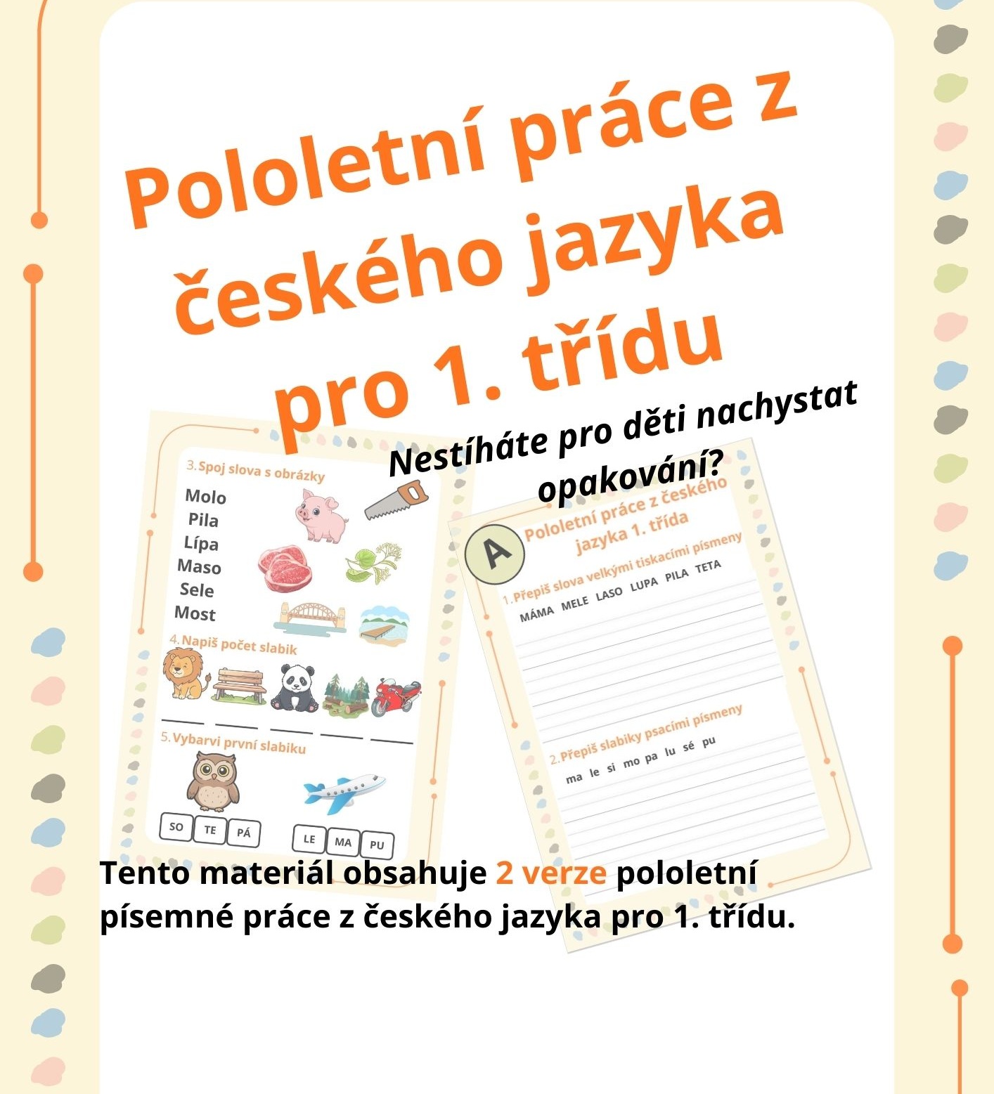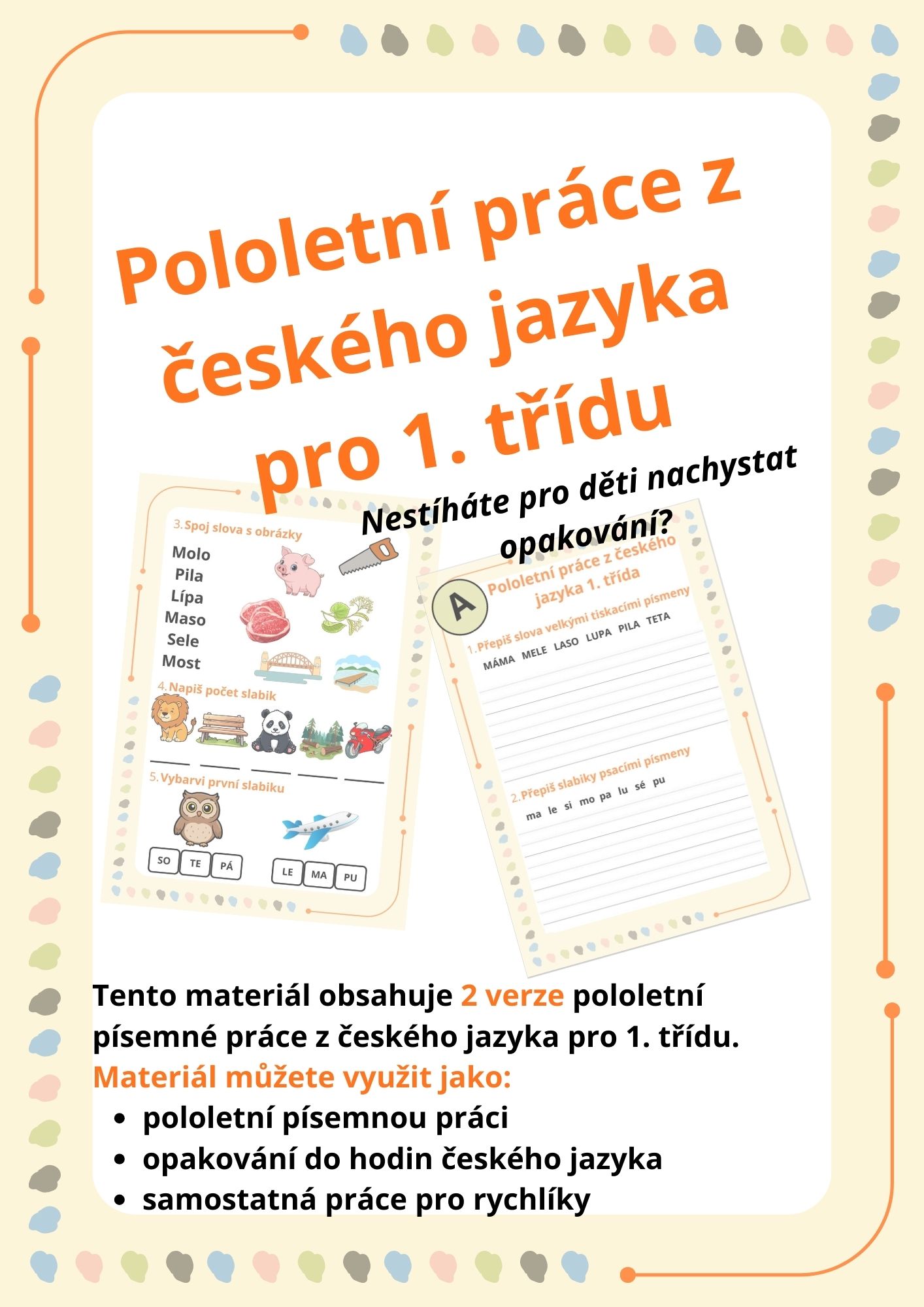 Nestíháte nachystat opakování pro děti? Nevadí...tento materiál vám usnadní práci a můžete s dětmi zopakovat jejich znalosti a dovednosti v českém jazyce.