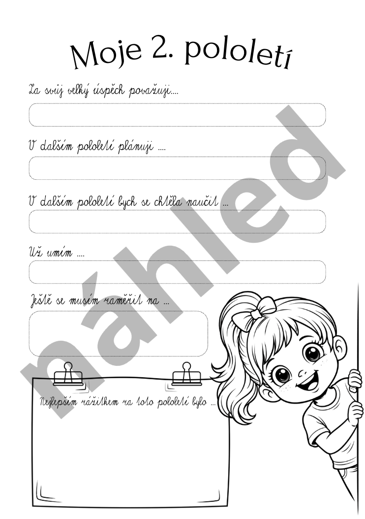 Praktický soubor pracovních listů, který pomůže žákům zastavit se, zamyslet se nad svou prací a uvědomit si vlastní pokroky. Obsahuje sebehodnocení za 1. i 2. pololetí a přehledné listy „Už umím…“, díky kterým mají děti jasno v tom, co zvládají a na čem ještě zapracují.