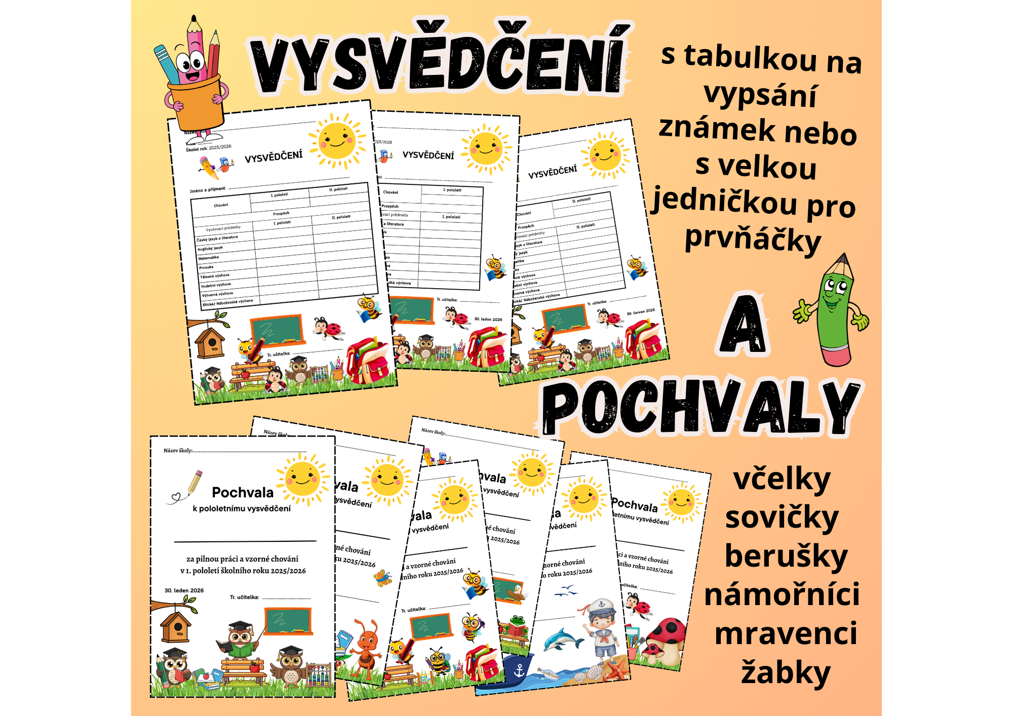 ✏️ Vysvědčení: s tabulkou na vypsání známek nebo s velkou jedničkou pro prvňáčky
