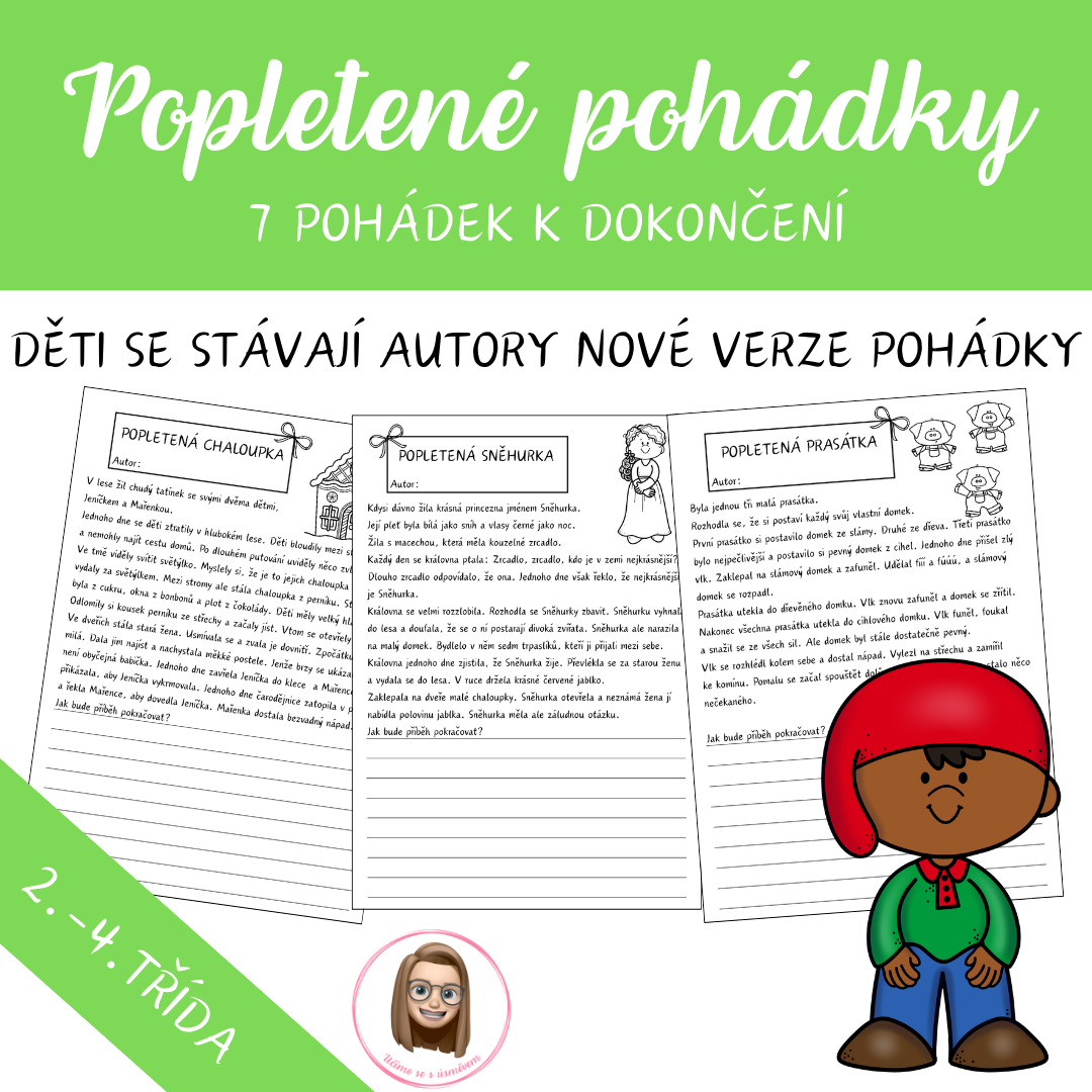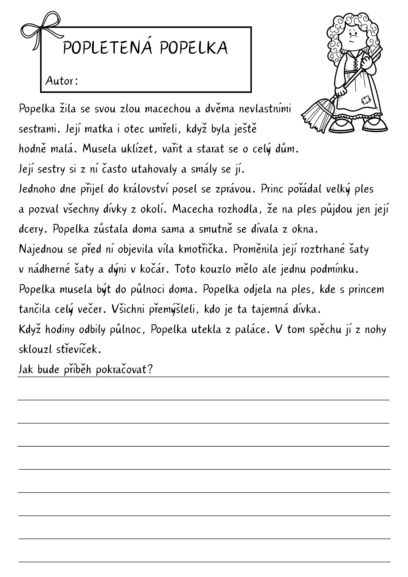 Soubor obsahuje 7 pracovních listů s rozepsanými známými pohádkami. Úkolem dětí je vymyslet a dopsat vlastní konec příběhu.