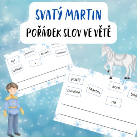 Jednotlivé věty pak mohou žáci poskládat za sebou tak, aby vytvořili smysluplný příběh o svatém Martinovi.