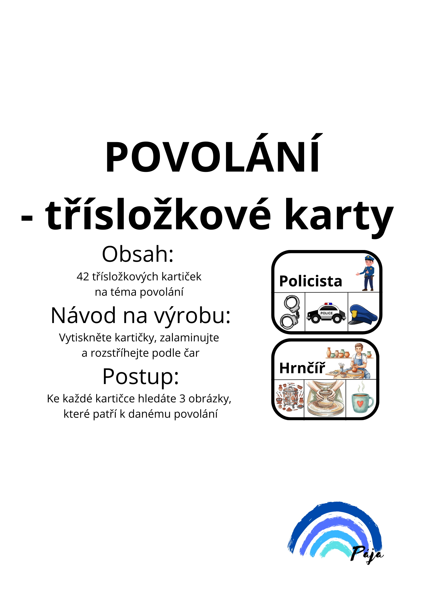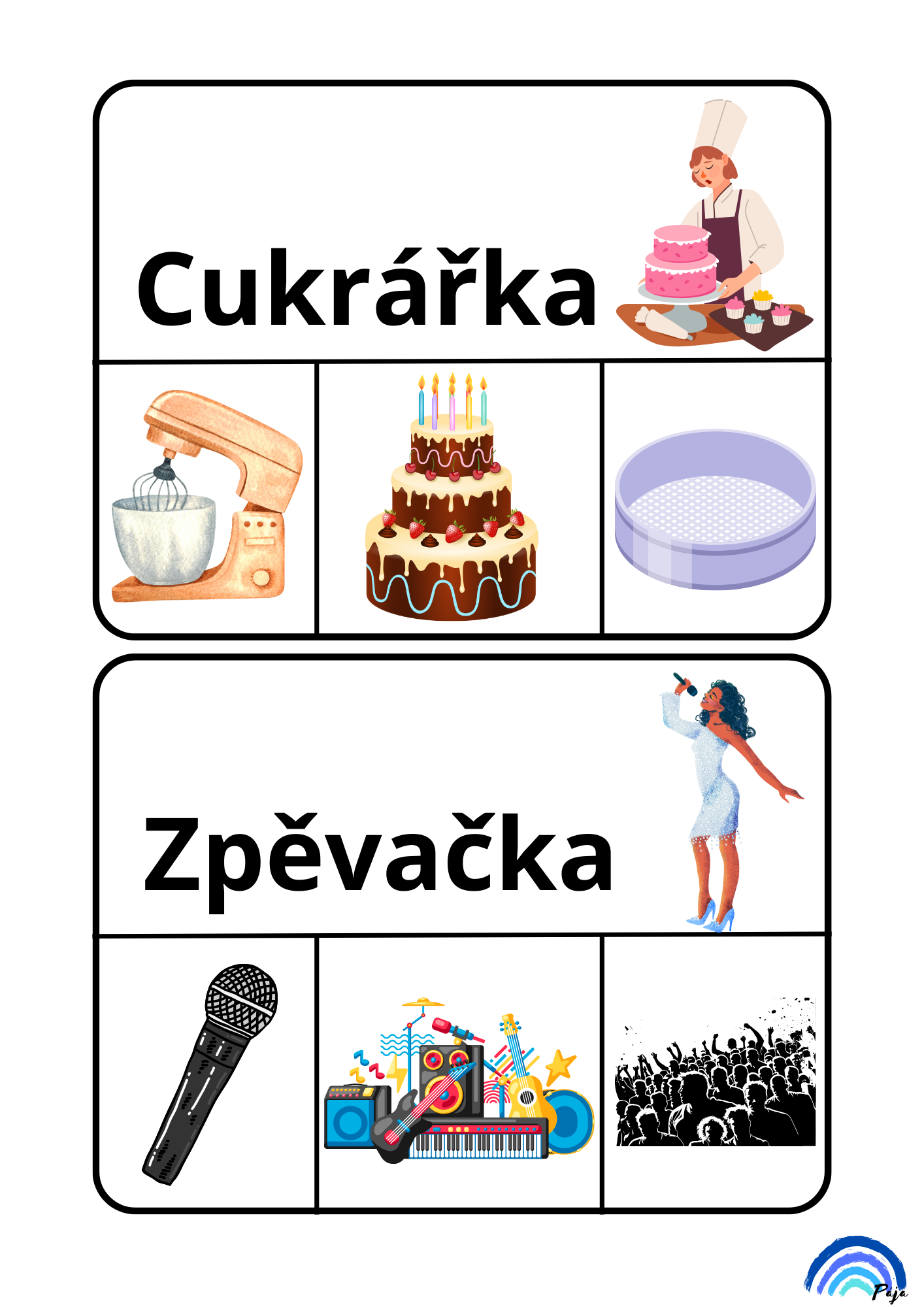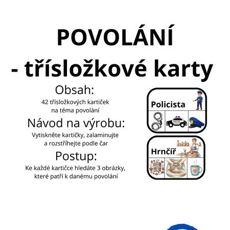 Postup: Ke každé kartičce hledáte 3 obrázky, které patří k danému povolání