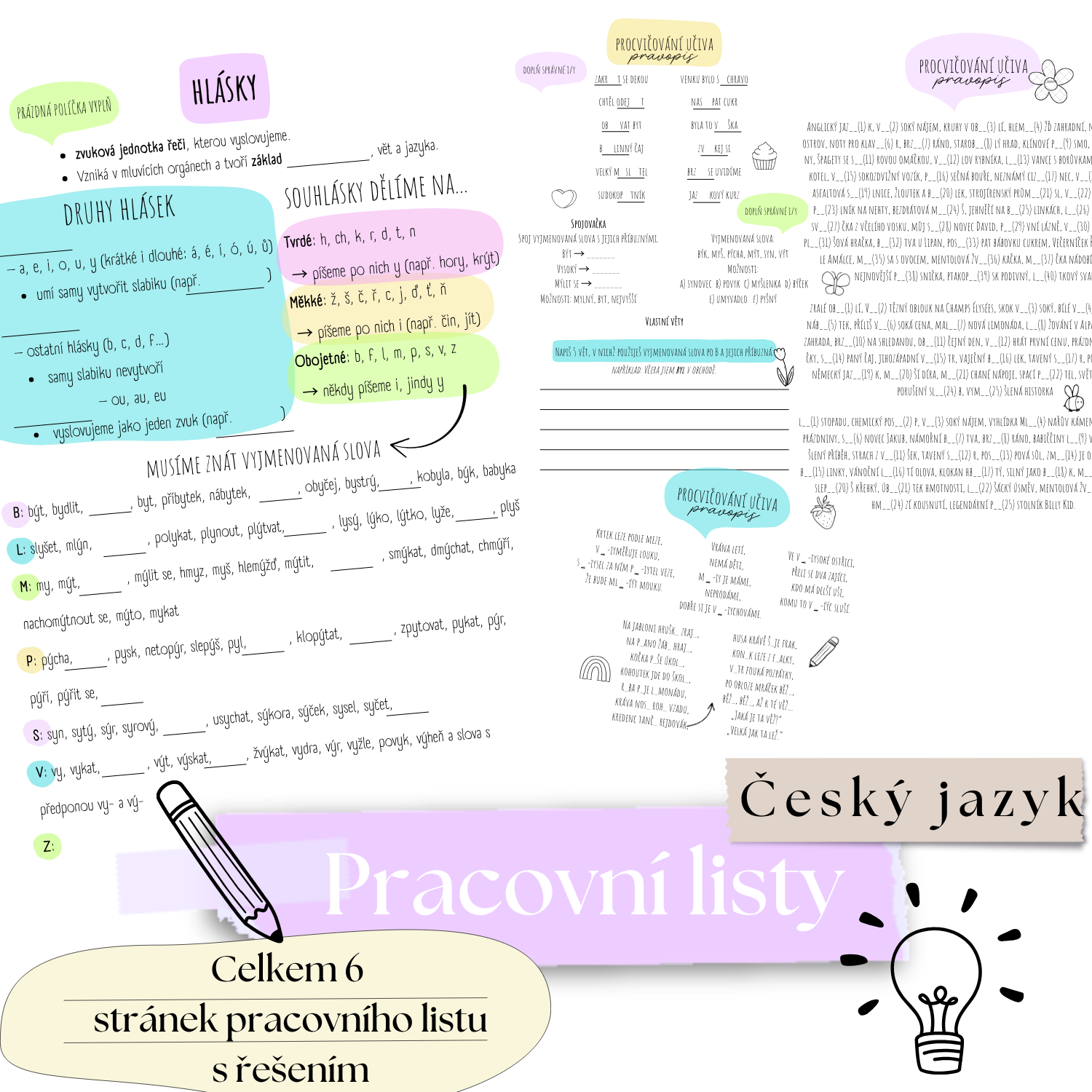 Pracovní list HLÁSKY obsahuje 6 stránek včetně procvičování a teorie a dalších 6 stránek s řešením celého pracovního listu. Pracovní list jde použít buď jako zápis či pouhé opakování probraného učiva.