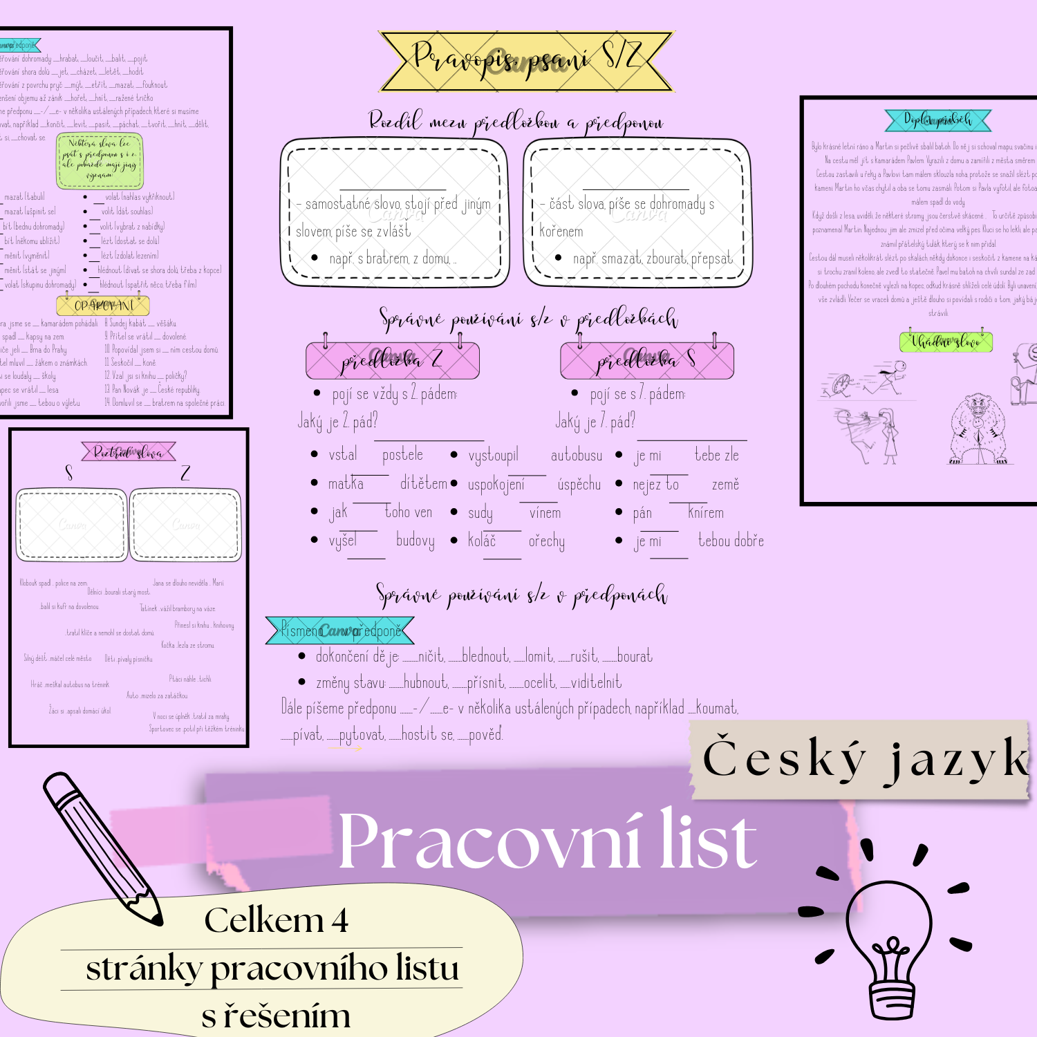 Pracovní list PRAVOPIS S/Z s řešením