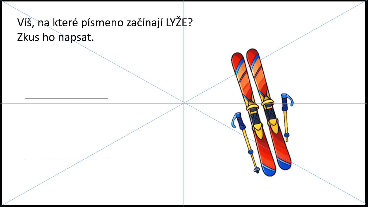 - Úkol: opis a přepis jednoduchých slov (např. HRA, ZIMA).