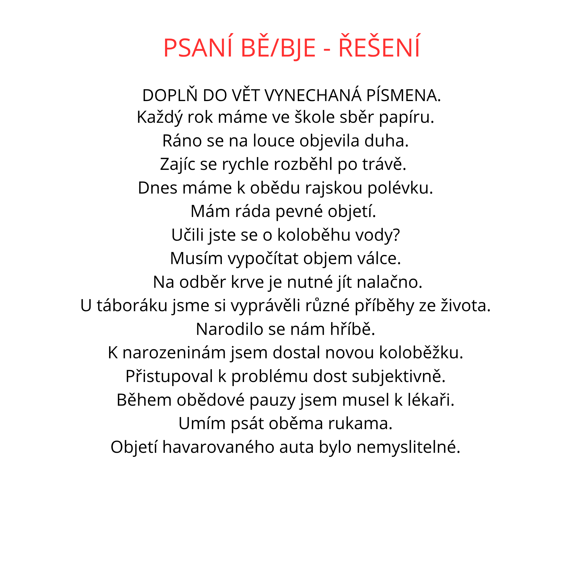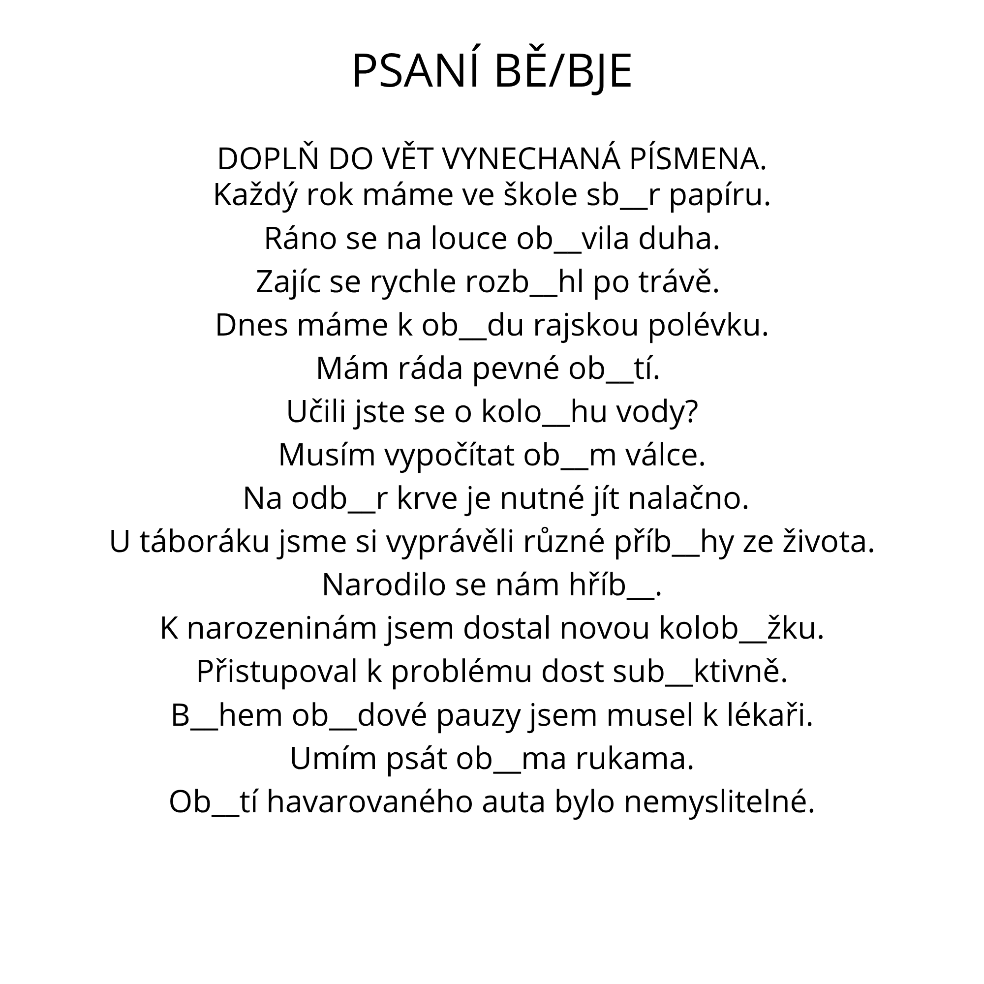 Procvičování pravopisu BĚ/BJE, MĚ/MNĚ a VĚ/VJE – pracovní listy s řešením