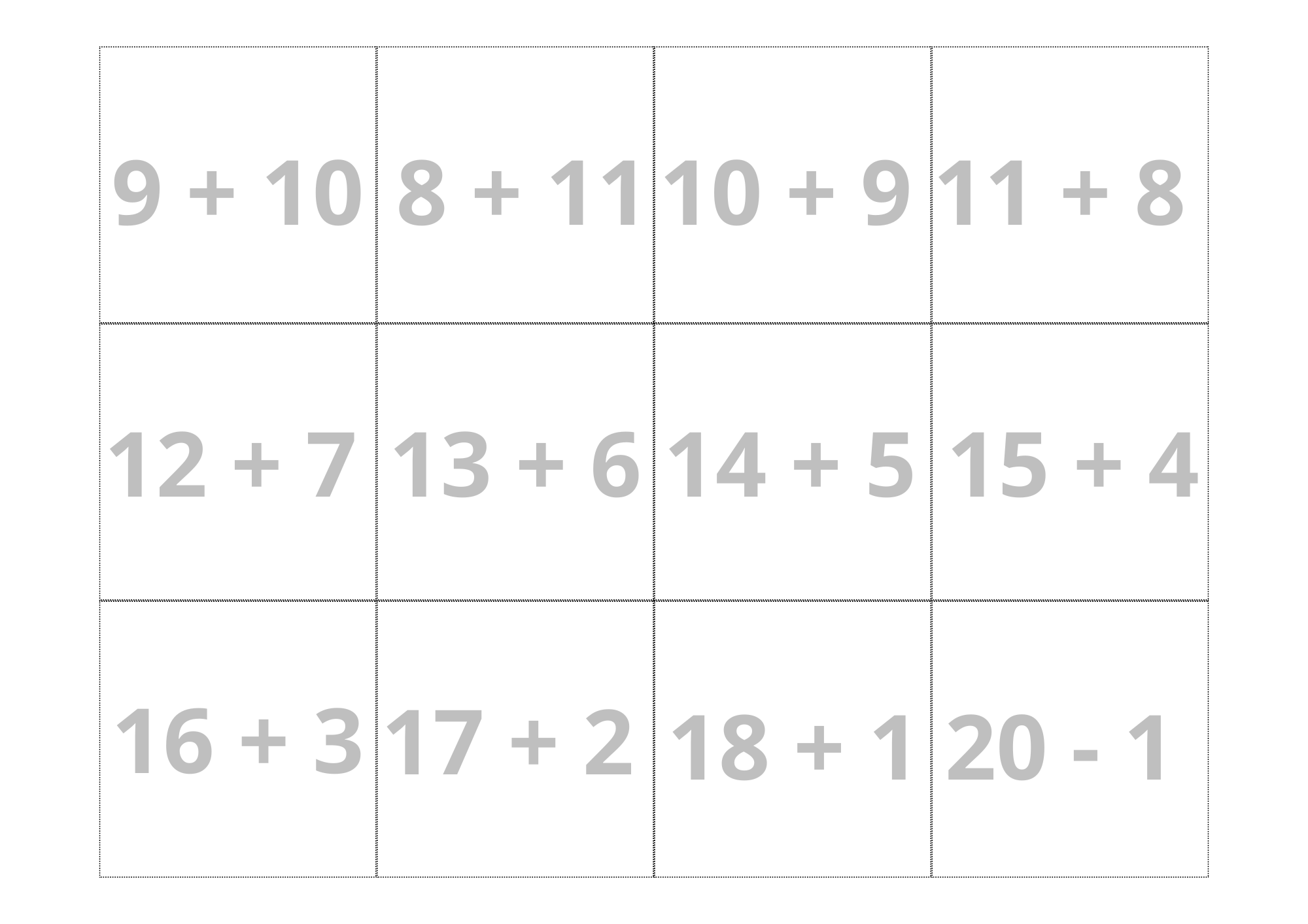 Soubor je vhodný pro žáky první třídy nebo pro děti, které procvičují sčítání a odčítání do 20 s přechodem přes desítku.
