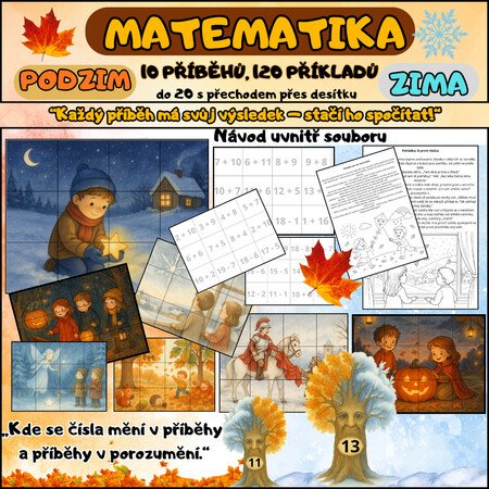 Tento soubor propojuje matematiku, čtení s porozuměním a logické myšlení. Děti se vydají na podzimní cestu k moudrým stromům, kde je čeká spousta zábavných početních úkolů, příběhů a obrázků, které se před nimi budou postupně odhalovat.