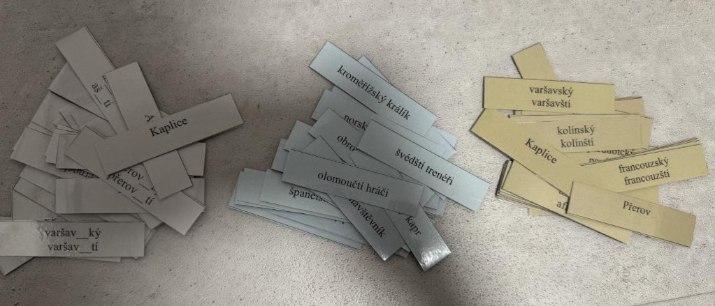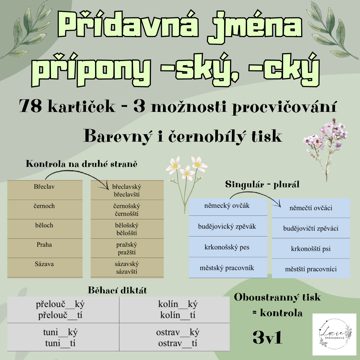 Didaktická pomůcka k procvičení přípon u přídavných jmen -ský/-ští, -cký/-čtí.