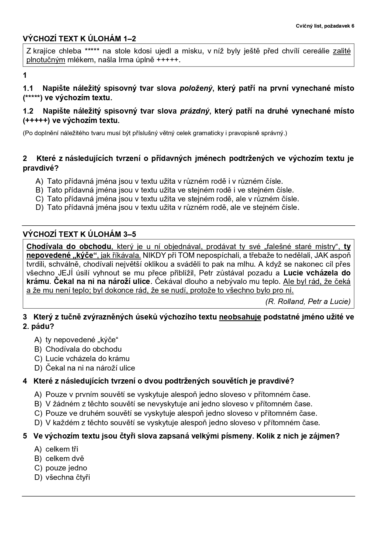 POZOR! Tento materiál je součástí jiného materiálu: Přijímačkový pracovní sešit ČJL 1. Pokud jej již máte, tento materiál NEKUPUJTE. Pokud ne, ale stáli byste o výhodnější koupi – více než 100 testových otázek a několik interaktivních cvičení za cenu 65 Kč – můžete pokračovat na tento odkaz.