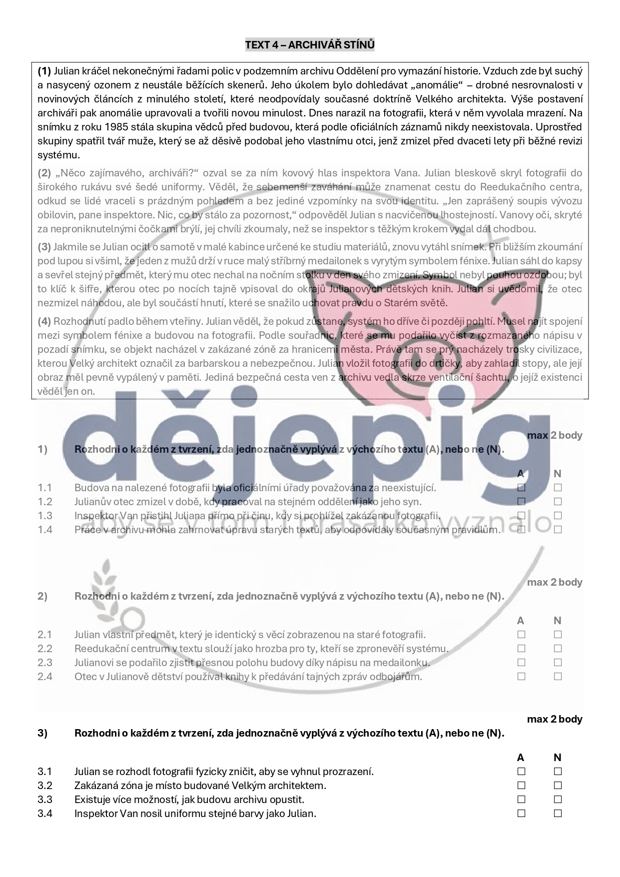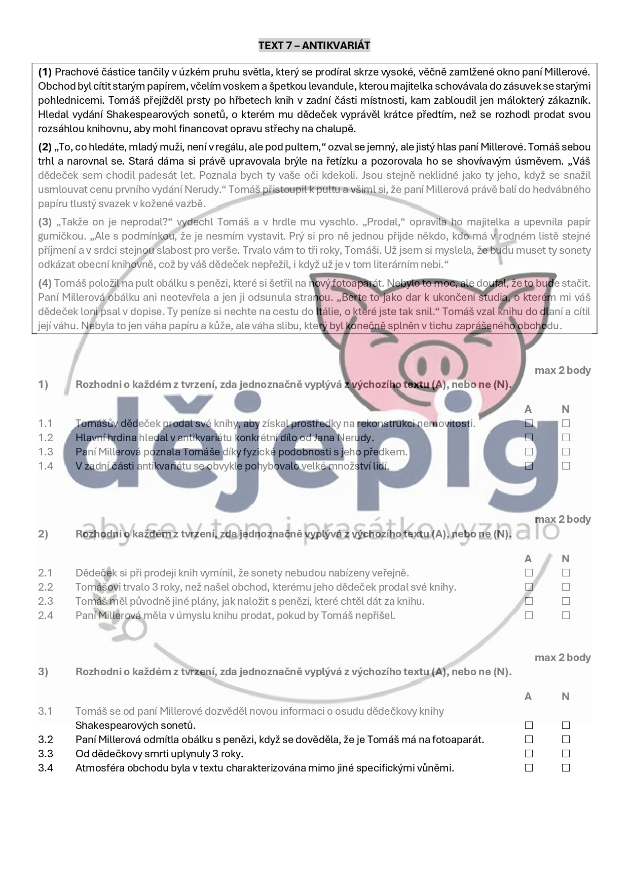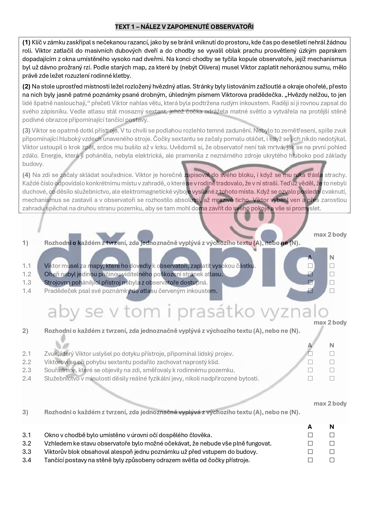 - ke každému textu 3 úlohy s celkem 12 tvrzeními na určování jejich pravdivosti