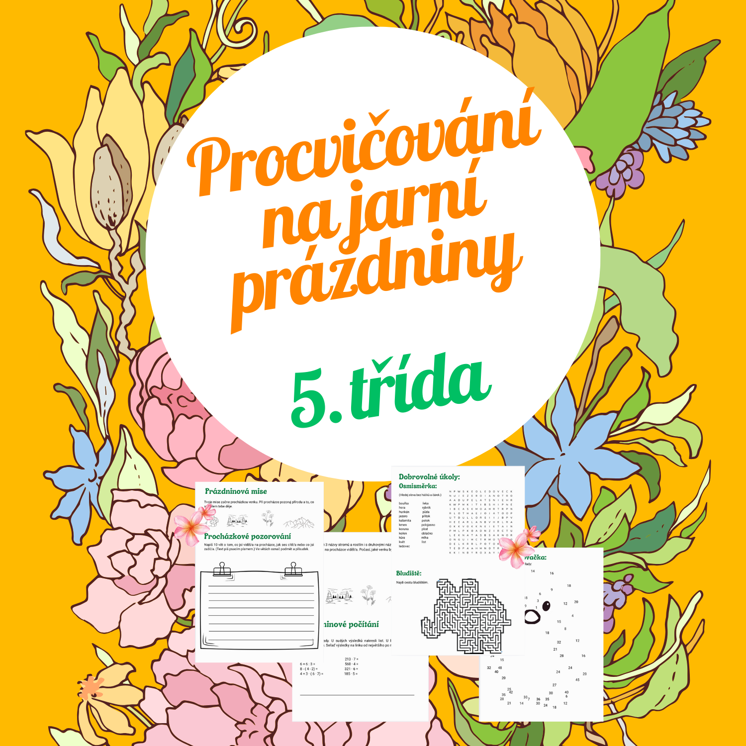 a prvouky na jarní prázdniny. Cvičení jsou propojená s procházkou a jako dobrovolné cvičení je v materiálu osmisměrka, bludiště a matematická spojovačka.