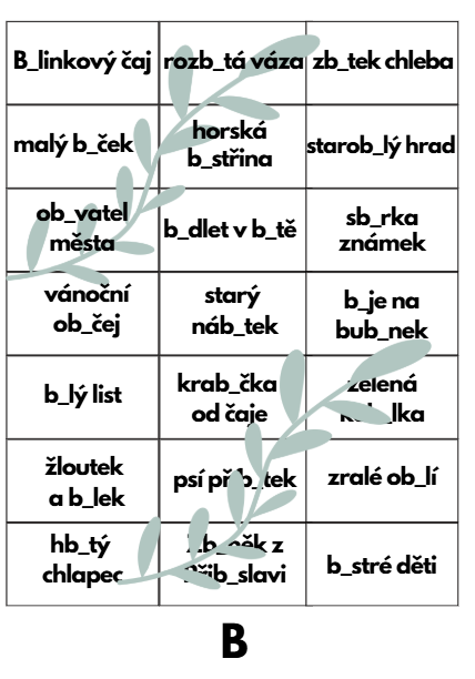 - Příprava: Jednotlivé karty (podle písmen B–Z) vytiskněte, zalaminujte a rozmístěte po třídě, na chodbě nebo na školním dvoře.
