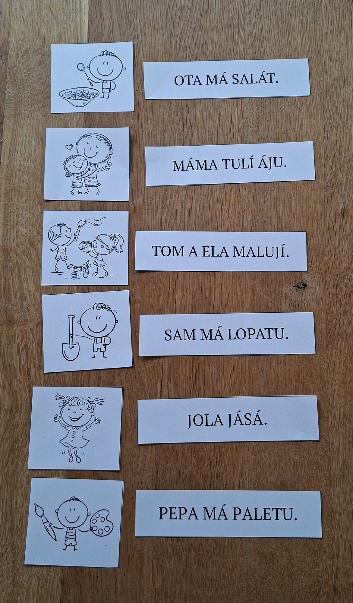 - 12 obrázků a 12 krátkých vět k přiřazování