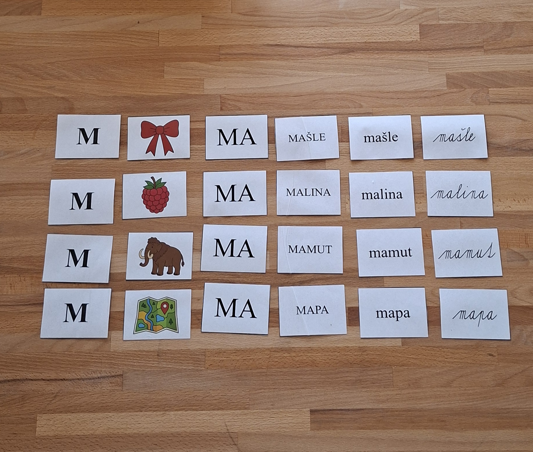 - Kartičky se slovem tiskacím písmem (velké i malé)