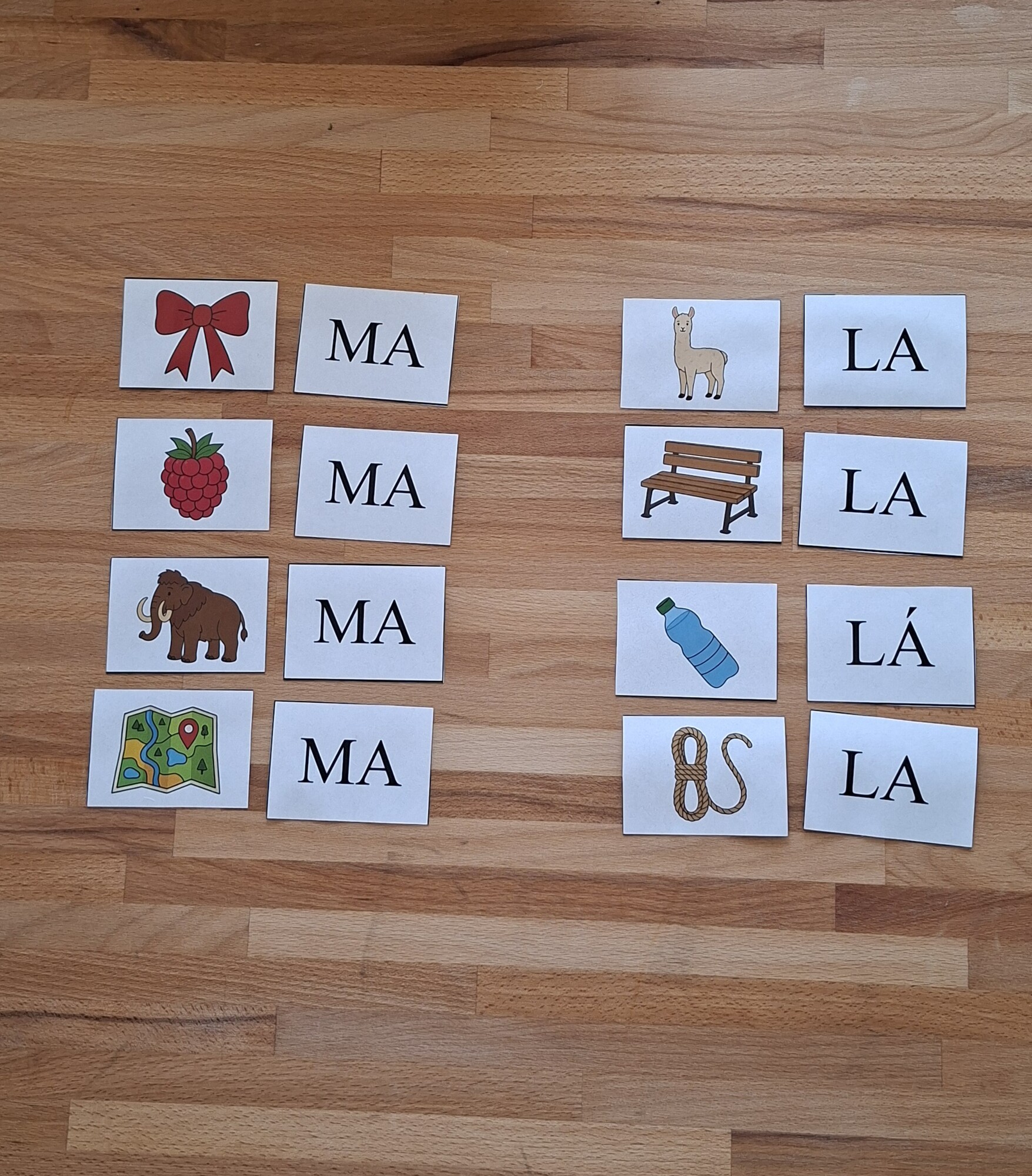- procvičení těchto slabik: MA, ME, MO, MU, LA, LE, LO, LU, PA, PE, PO, PU, SA, SE, SO, SU.