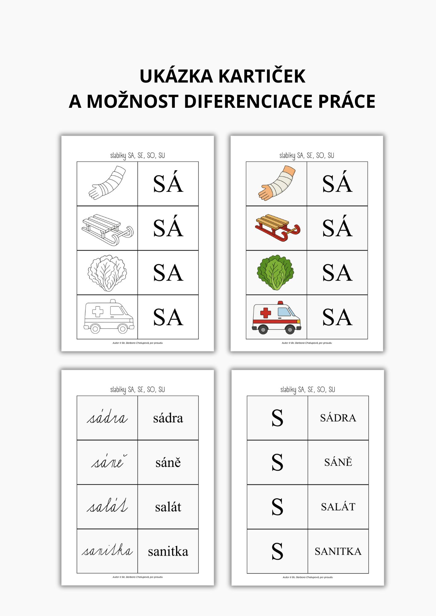 Díky promyšlené skladbě kartiček mohou pracovat úplně všichni – od dětí, které teprve poznávají první slabiky, až po ty, které už zvládnou přečíst celé slovo!